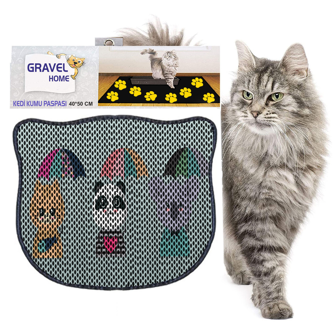 Covoras litiera pentru colectarea granulelor de nisip, Paws & Whiskers, Kdkafa0200, 50% PVC/50% poliester, Multicolor
