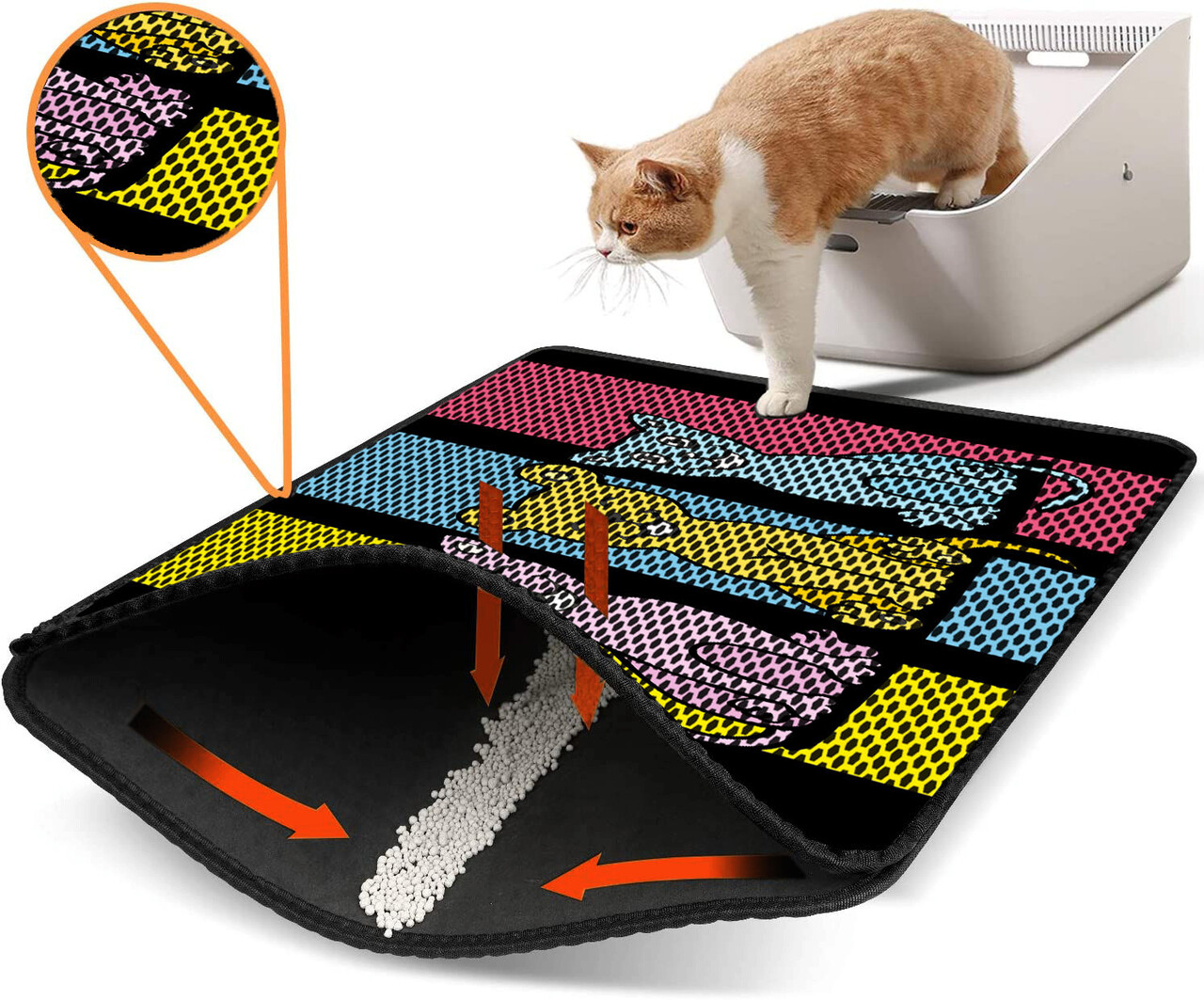 Covoras litiera pentru colectarea granulelor de nisip, Paws & Whiskers, Nrszn0040, 50% PVC/50% poliester, Multicolor