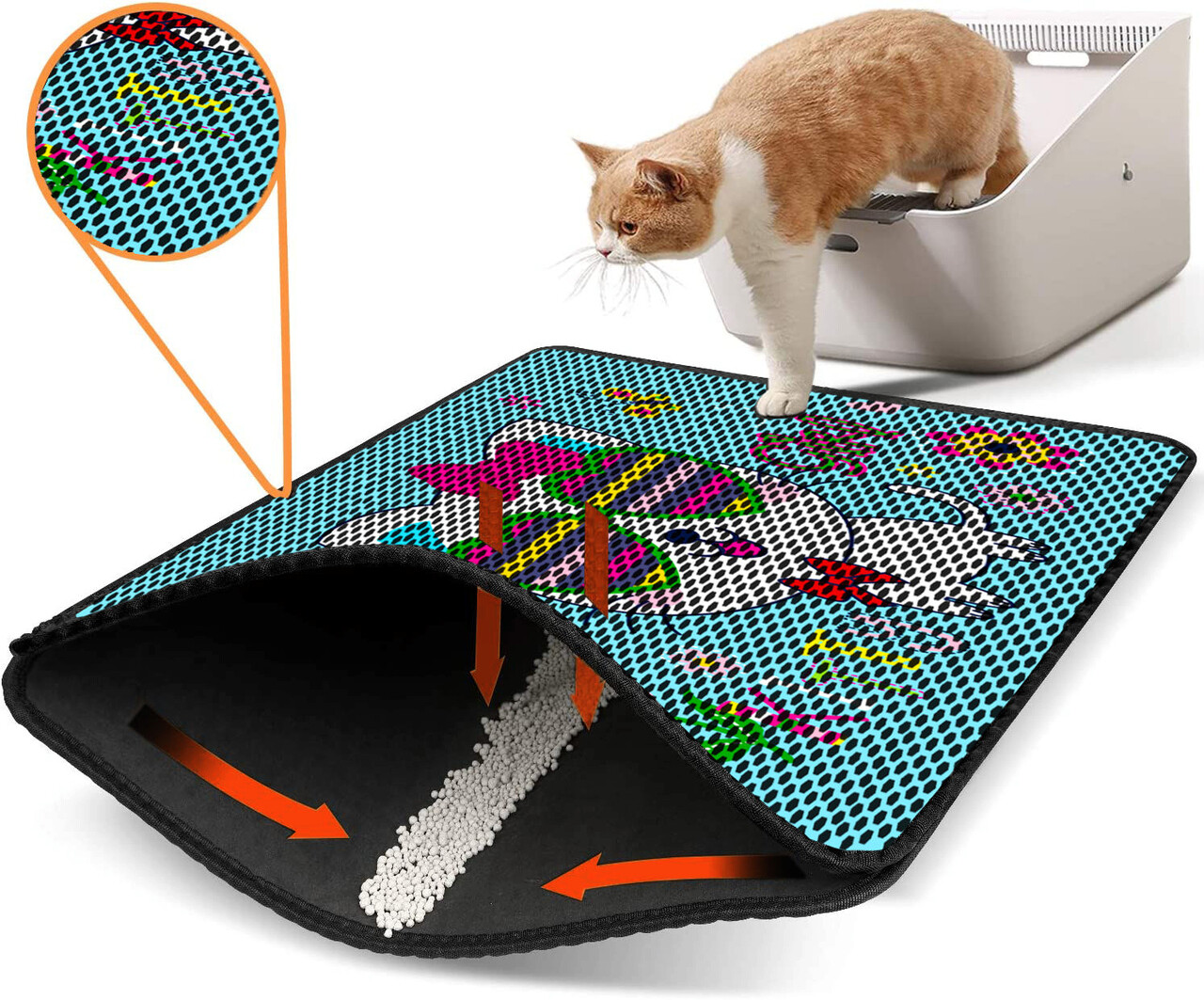 Covoras litiera pentru colectarea granulelor de nisip, Paws & Whiskers, Nrszn0048, 50% PVC/50% poliester, Multicolor