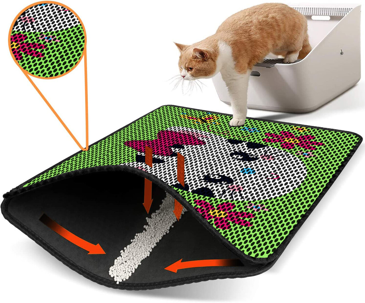 Covoras litiera pentru colectarea granulelor de nisip, Paws & Whiskers, Nrszn0062, 50% PVC/50% poliester, Multicolor