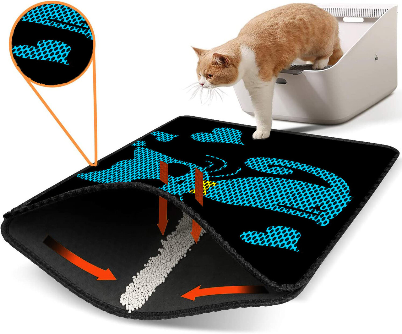 Covoras litiera pentru colectarea granulelor de nisip, Paws & Whiskers, Nrszn0135, 50% PVC/50% poliester, Multicolor