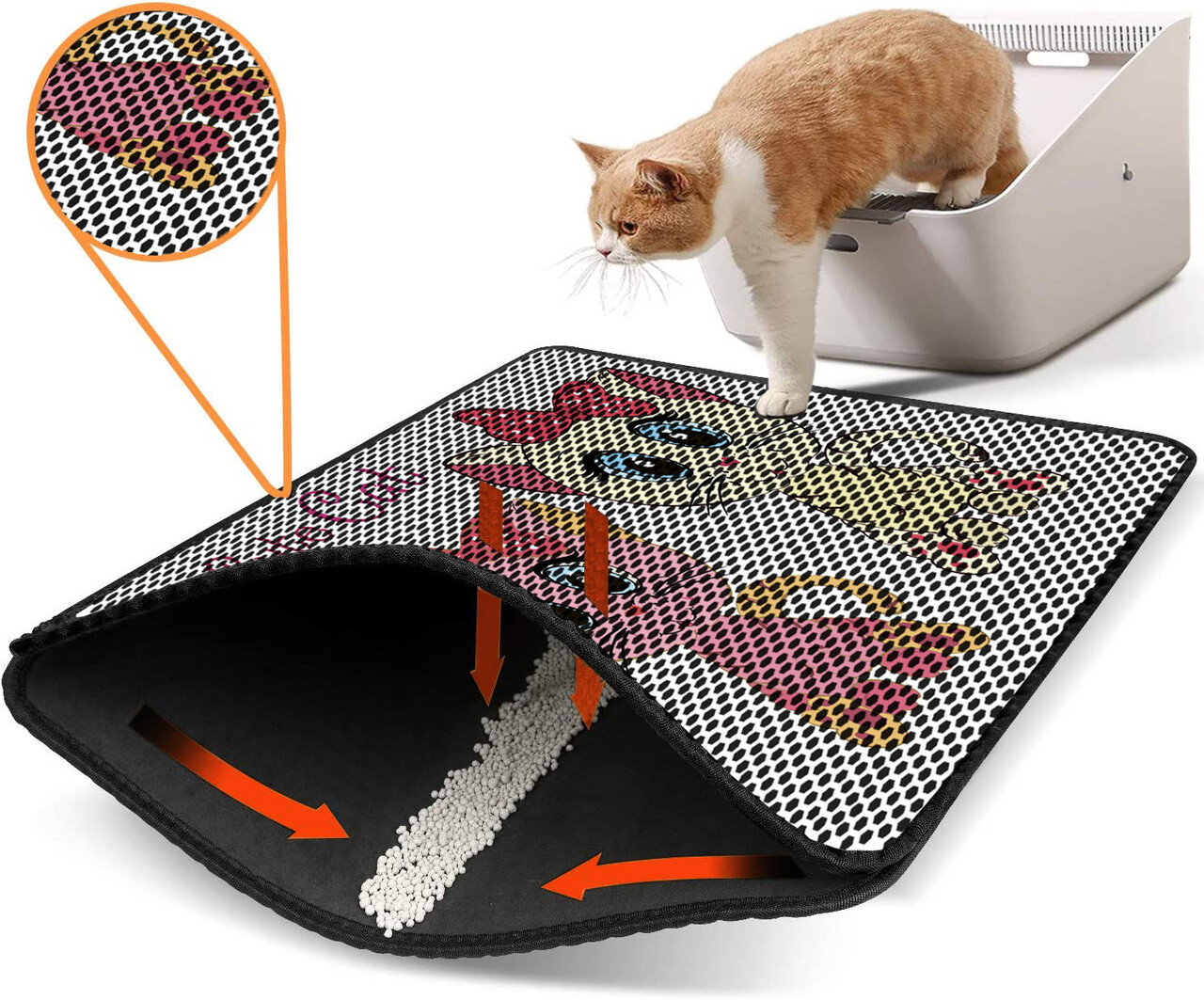 Covoras litiera pentru colectarea granulelor de nisip, Paws & Whiskers, Nrszn0155, 50% PVC/50% poliester, Multicolor