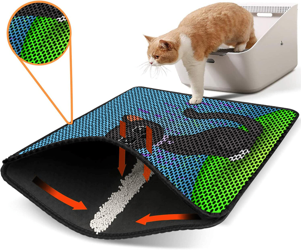 Covoras litiera pentru colectarea granulelor de nisip, Paws & Whiskers, Nrszn0156, 50% PVC/50% poliester, Multicolor