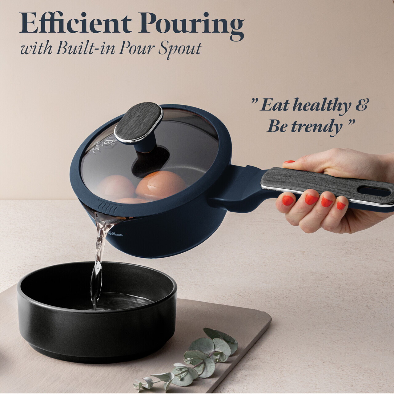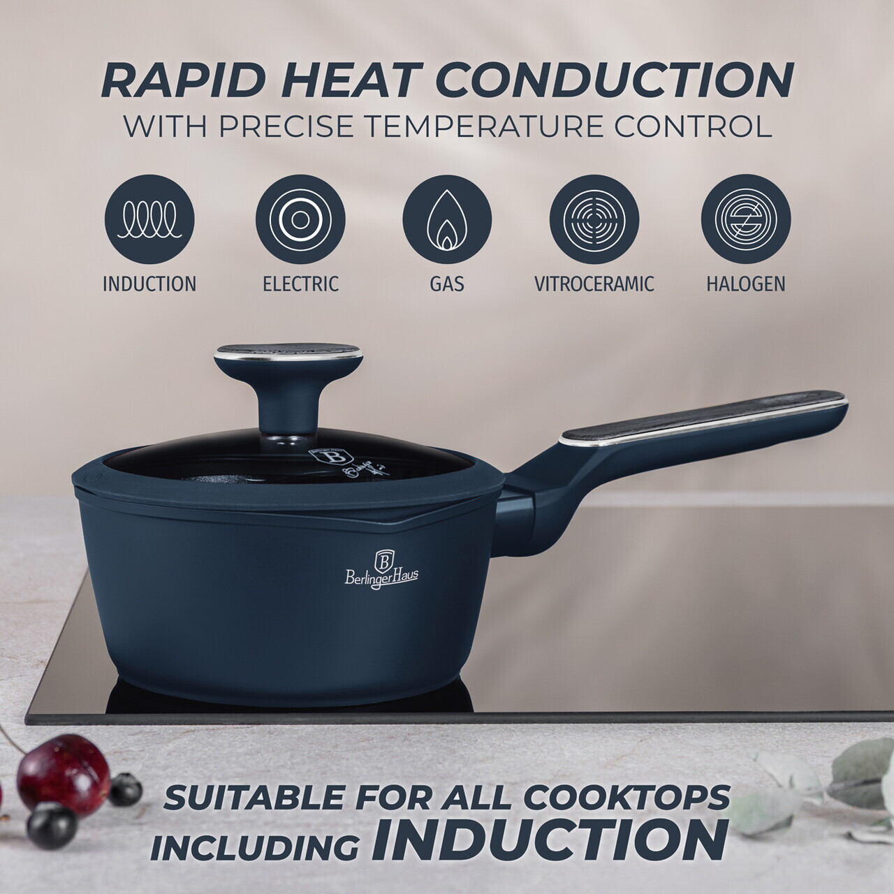 Cratita cu capac Berlinger Haus, Deep Sea, 16 cm, 1.2 L, aluminiu forjat, albastru mat/gri