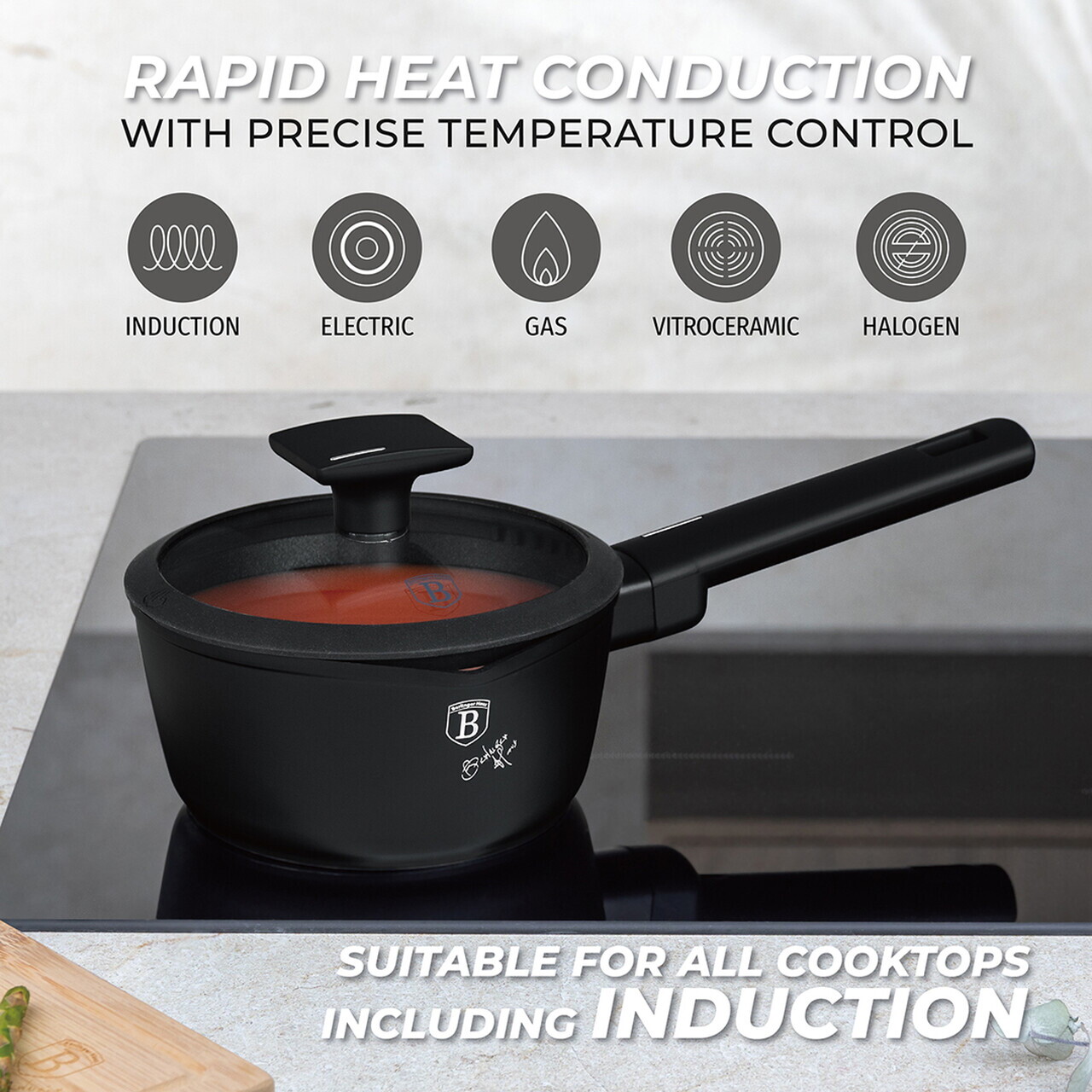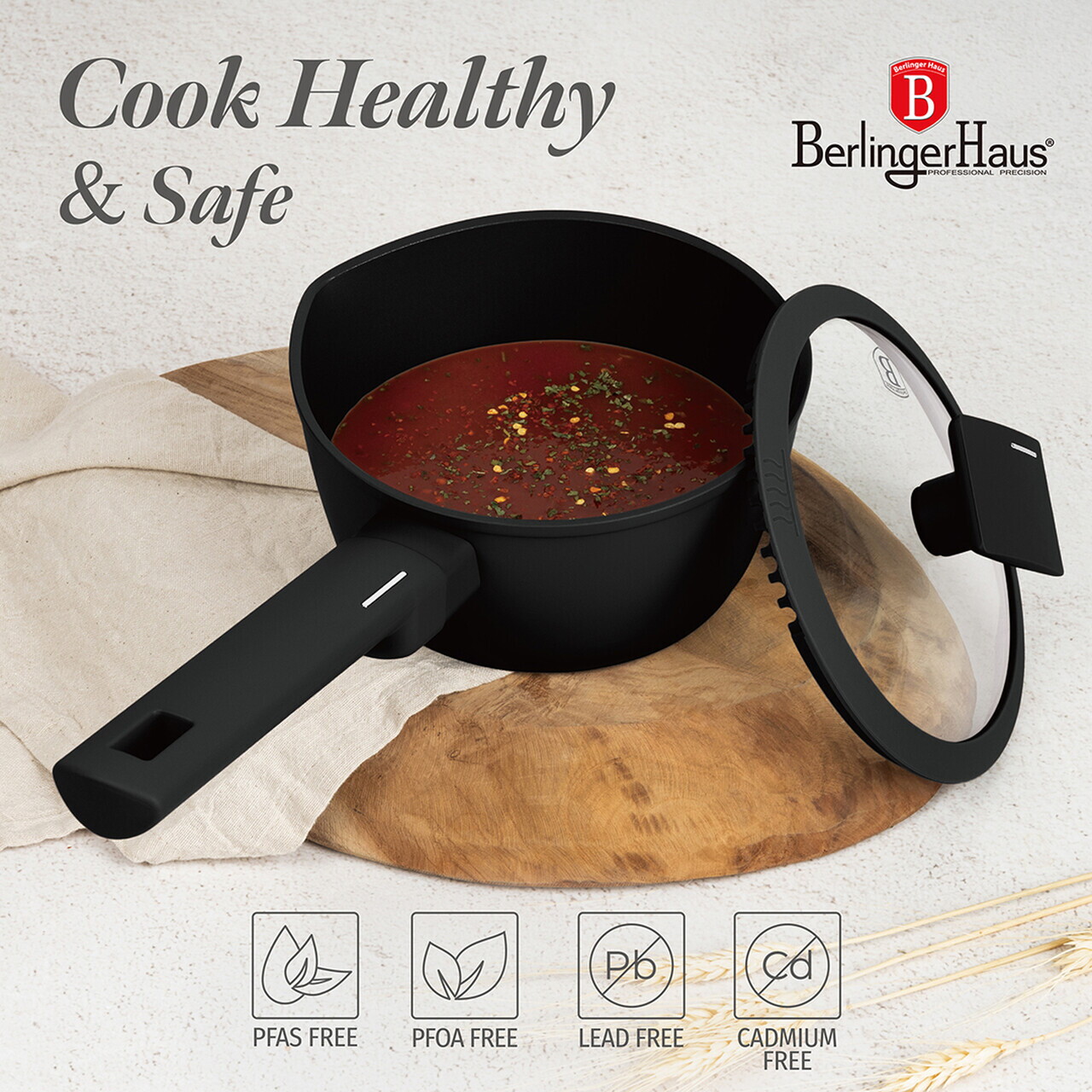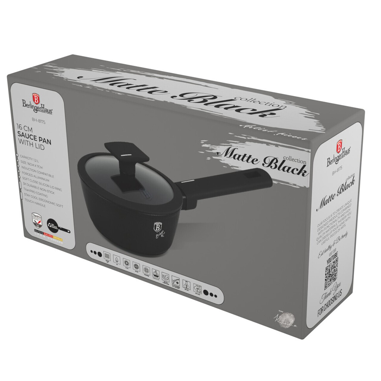 Cratita cu capac Berlinger Haus, Matte Black, 16 cm, 1.2 L, aluminiu forjat, negru