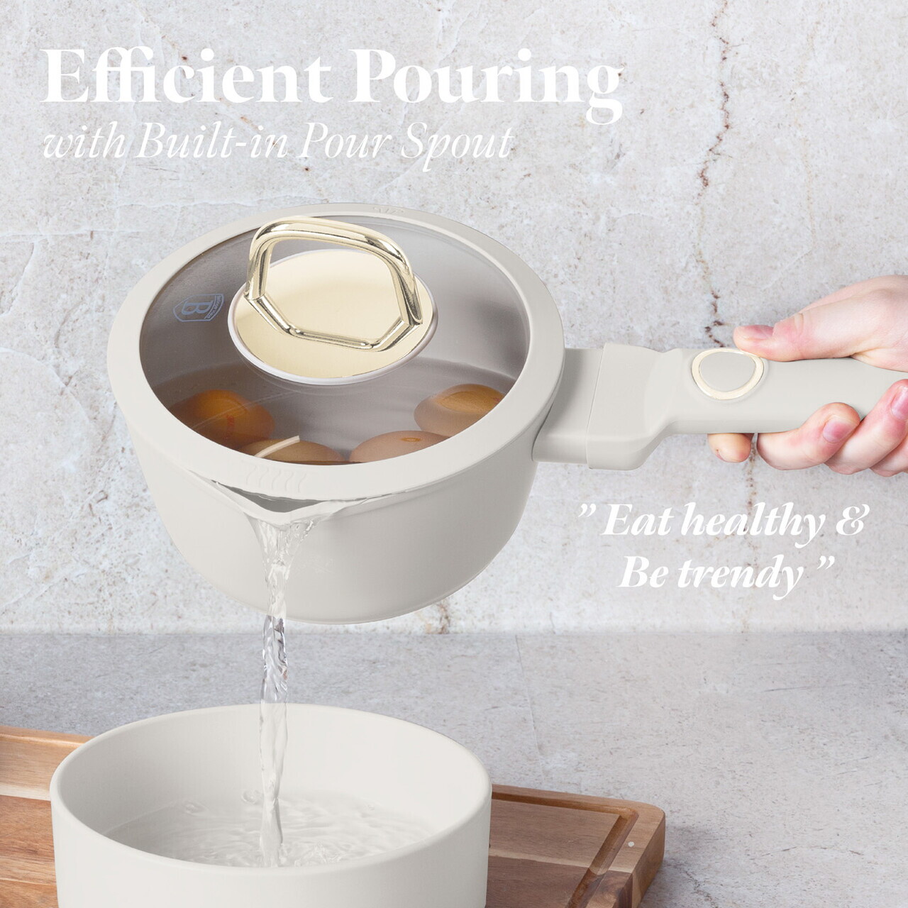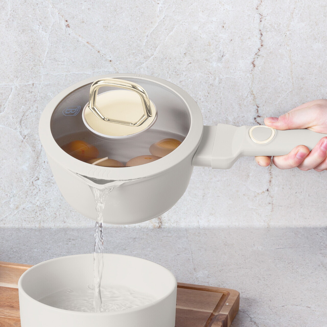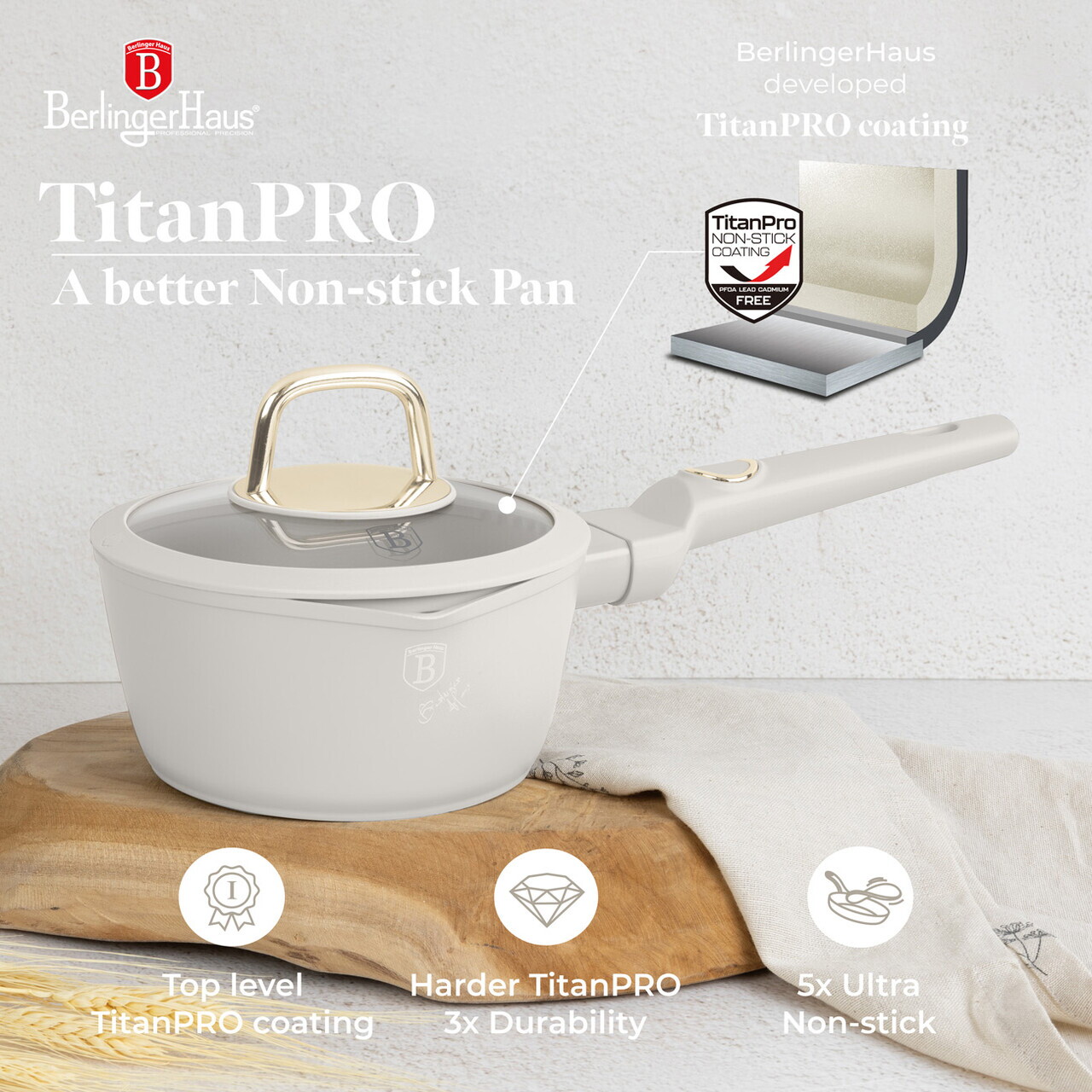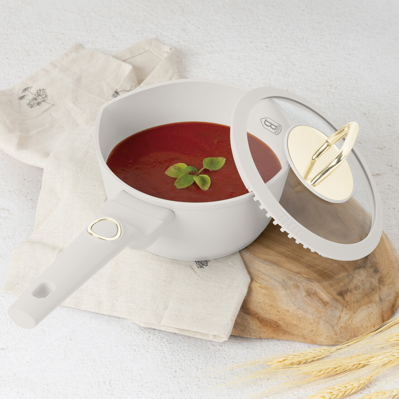 Cratita cu capac Berlinger Haus, Sahara, 16 cm, 1.2 L, aluminiu forjat, crem mat