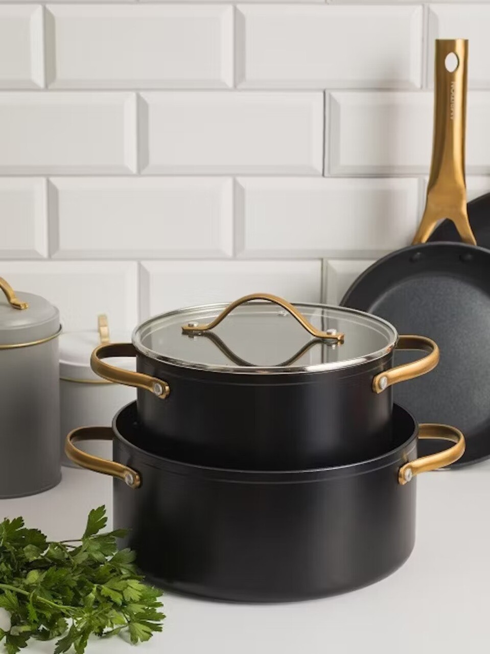 Cratita cu maner si capac Royal Gold, Ambition, 16 cm, 1.4 L, aluminiu forjat, strat antiaderent Qualum Basic, gri/auriu