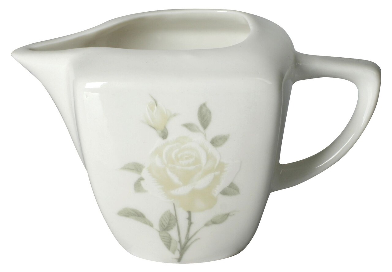 Cremiera din portelan alb de cea mai buna calitate. Forma prezinta un design modern, insa decoratiile subtile pastreaza eleganta si simplitatea. Se poate introduce in cuptorul cu microunde si poate fi spalata in masina de spalat vase.