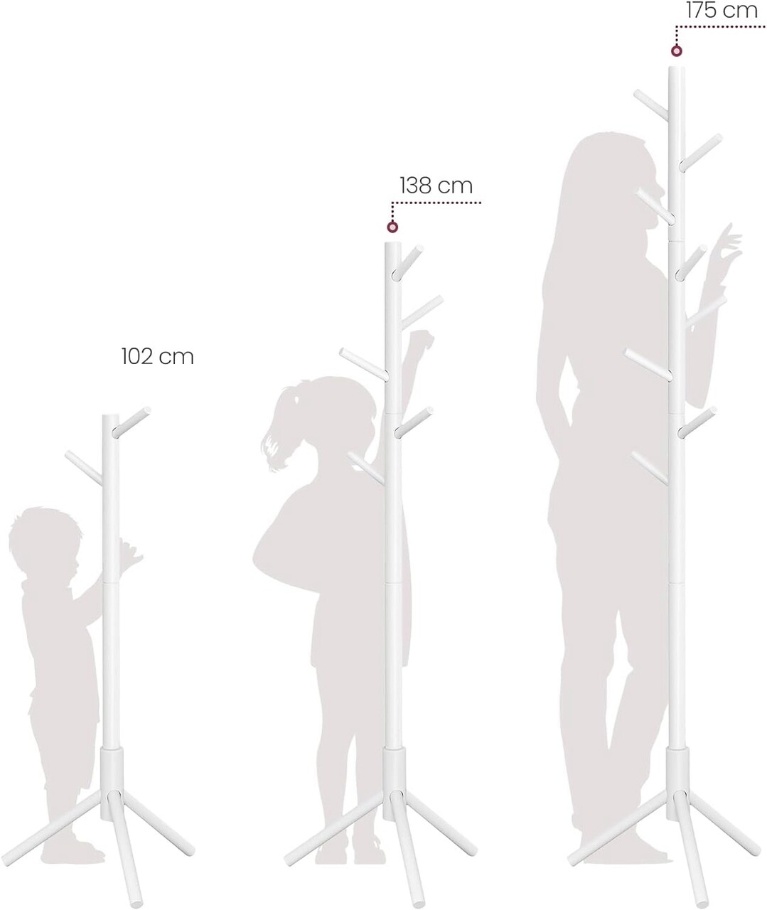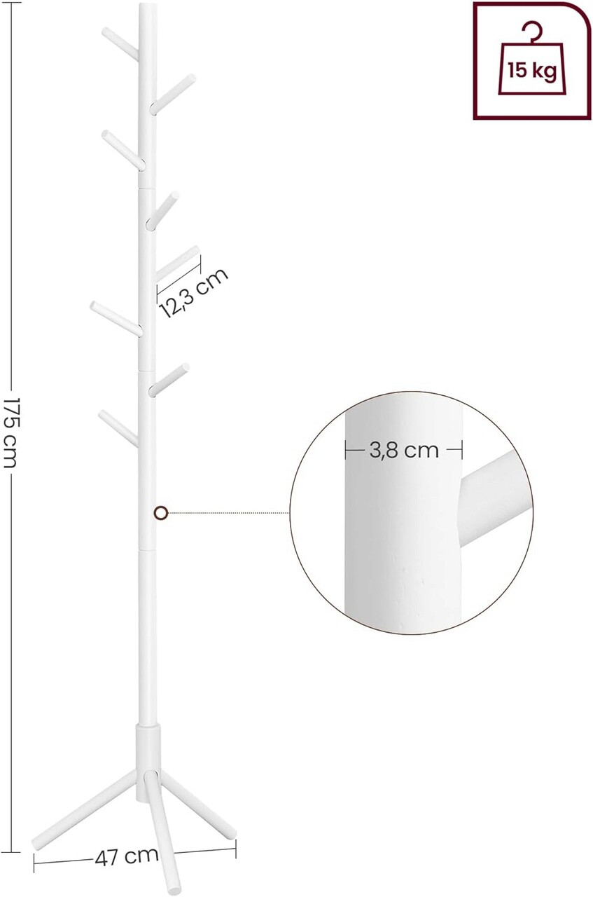 Cuier cu 8 agatatori Vasagle, 47x47x175 cm, lemn masiv, alb