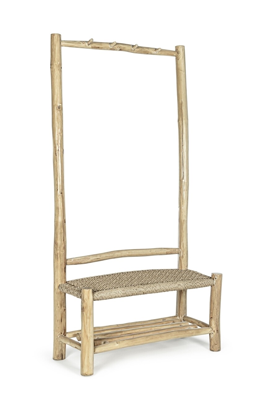 Cuier cu bancheta si pantofar, Lampok, Bizzotto, 90x40x180 cm, lemn de tec