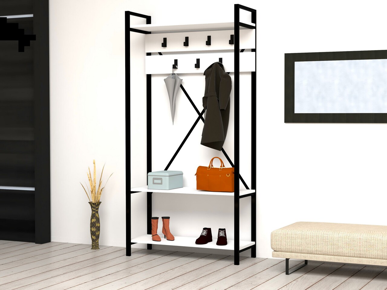 Cuier cu pantofar Alfa, Puqa Design, 90x34x180 cm, PAL, alb/gri