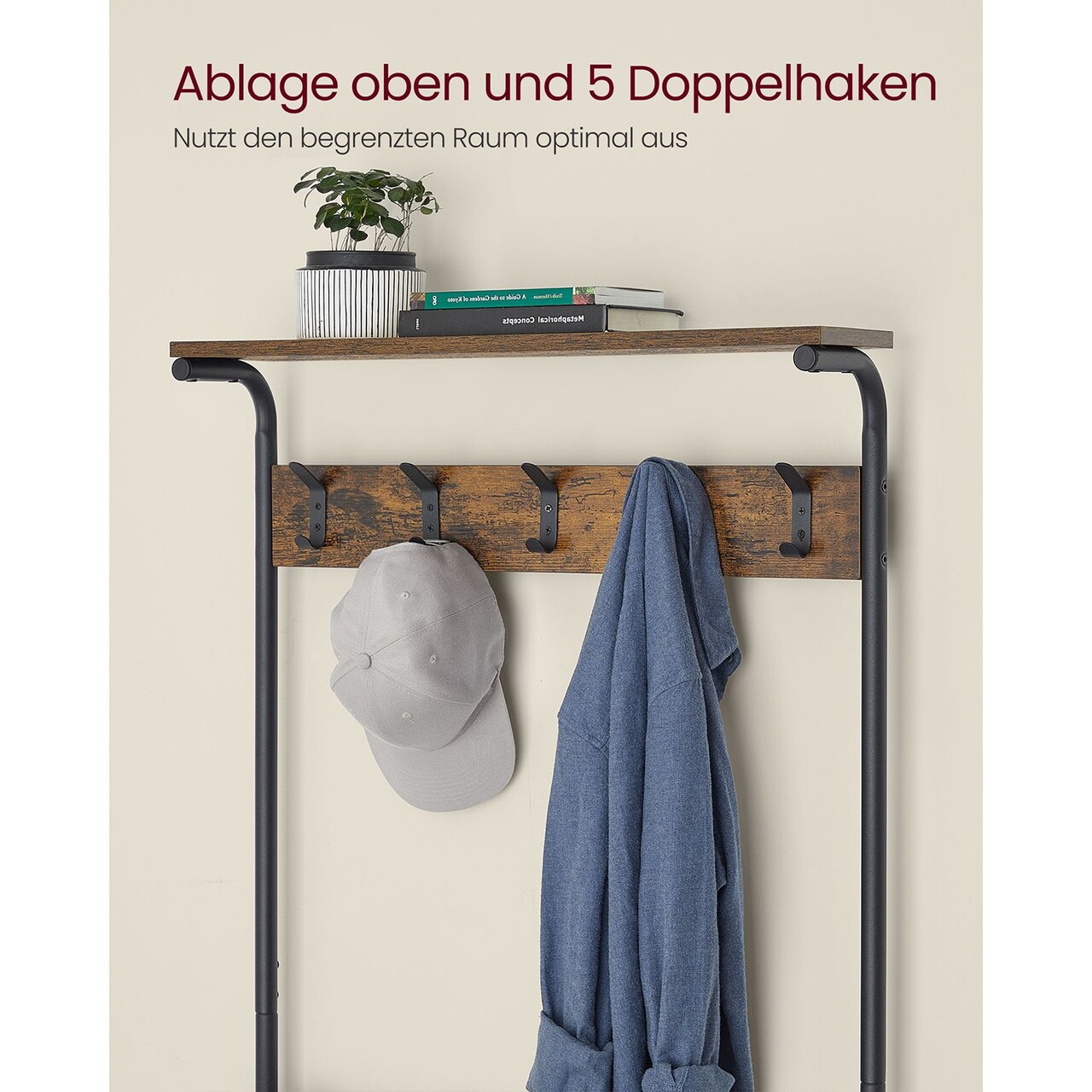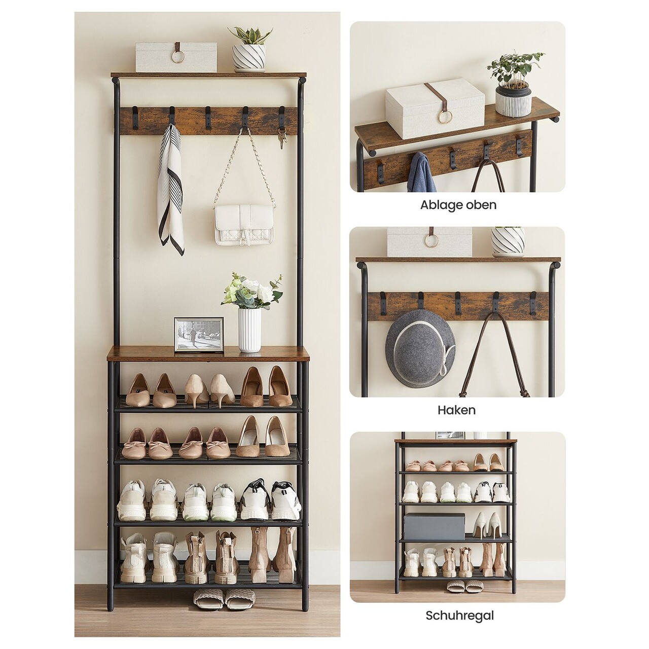 Cuier cu pantofar Industrial, Vasagle, 5 niveluri, 68x32.2x182 cm, PAL/otel, maro rustic