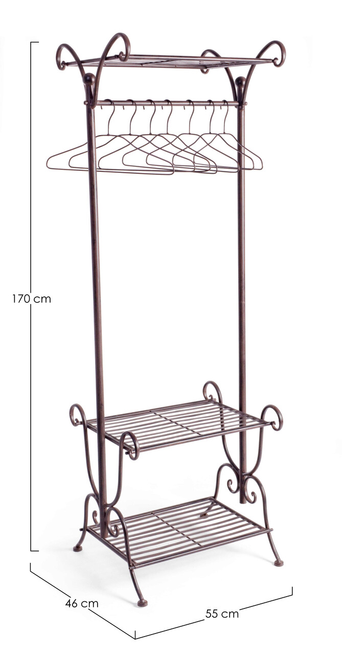 Cuier cu pantofar Melanie, Bizzotto, 55 x 46 x 170 cm, otel, maro