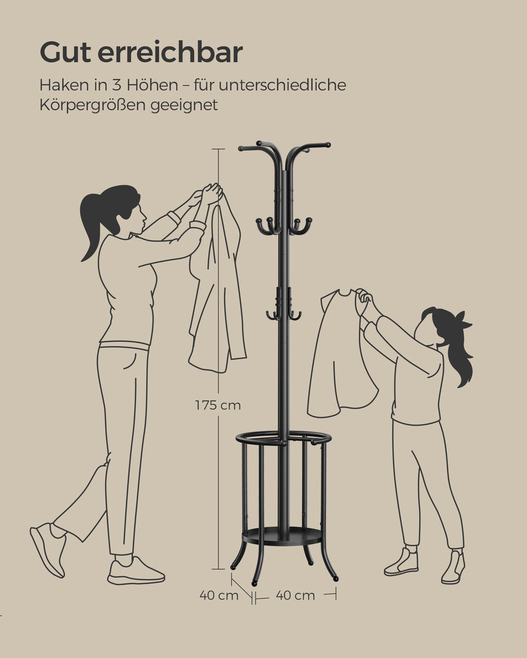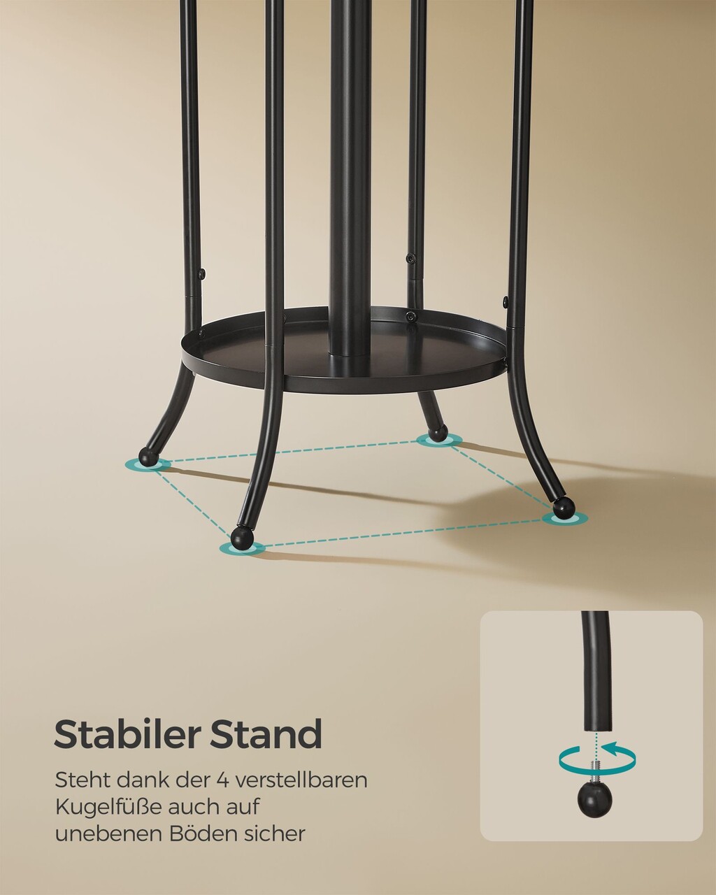 Durabil si versatil Suportul pentru haine este fabricat din tuburi metalice robuste cu strat de protectie impotriva ruginii si este deosebit de durabil. Se potriveste perfect in hol, camera de zi sau dormitor.