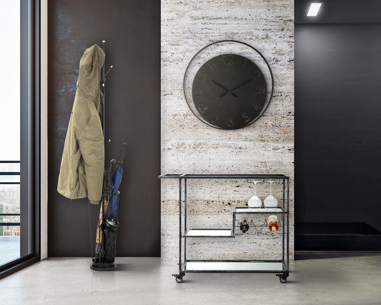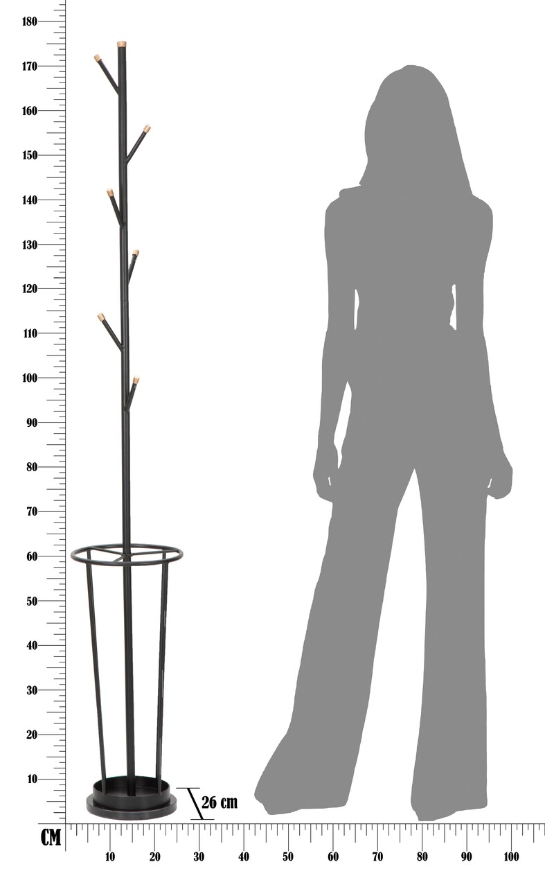 Cuier cu suport umbrele Glam, Mauro Ferretti, Ø 26x176 cm, fier, negru/auriu