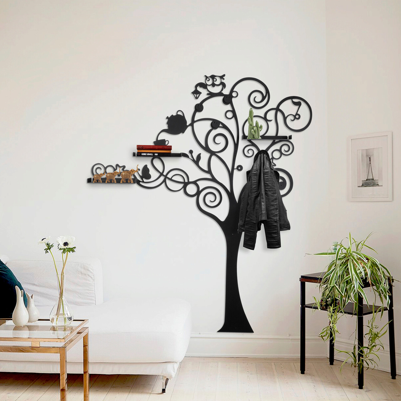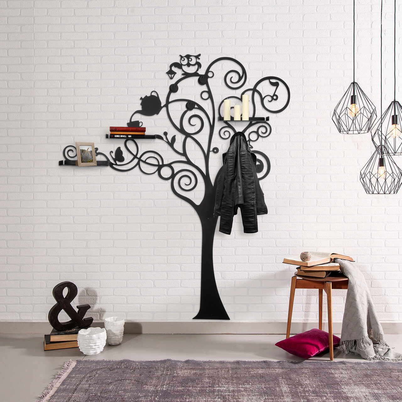 Cuier de perete, Ağaç WSH-024, Metal, Dimensiune: 158 x 5 x 187 cm, Negru