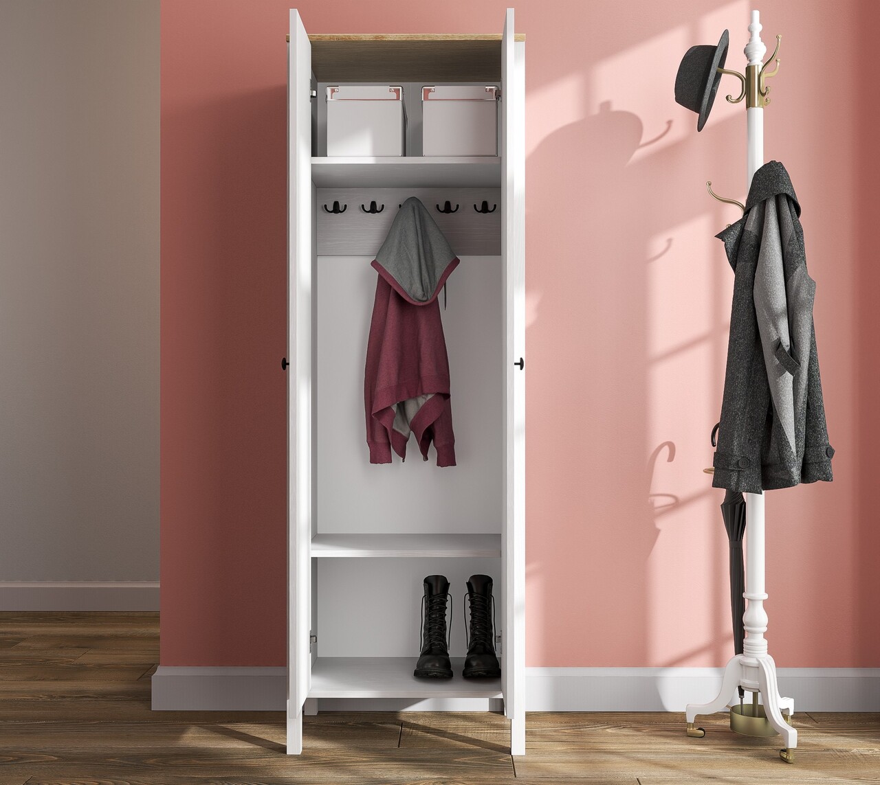 Cuier de perete, Cordelia, FRN-20080, 63x190x38 cm, PAL, Maro/Alb