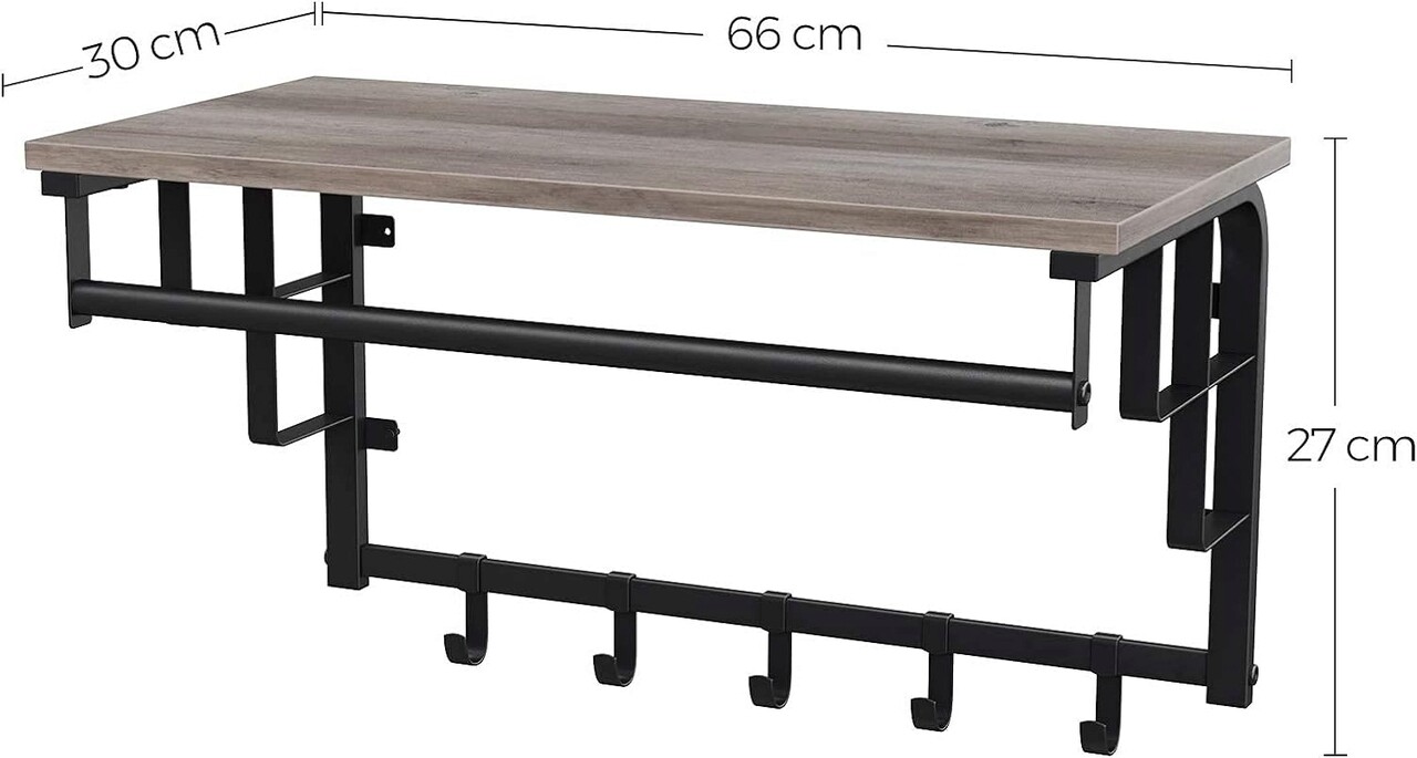 Cuier de perete cu 5 agatatori Vasagle, 66x30x27 cm, PAL/otel, gri/negru