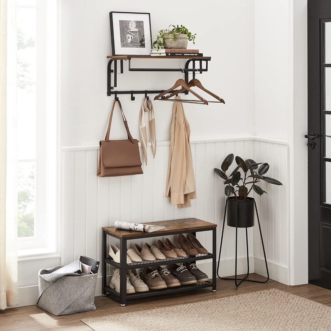 Cuier de perete cu raft, Vasagle, 66 x 30 x 27 cm, fier/PAL, maro rustic