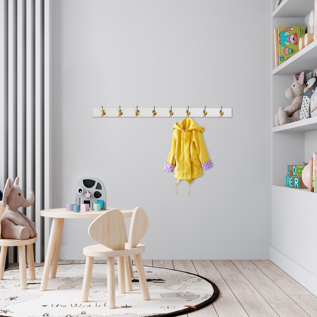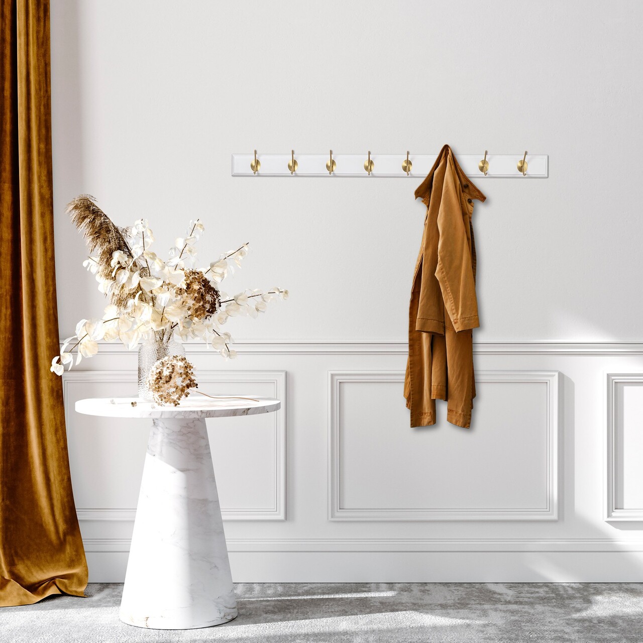 Cuier de perete din lemn, Daisetta, ASK-007, 100x7x8 cm, Lemn, Alb/Auriu