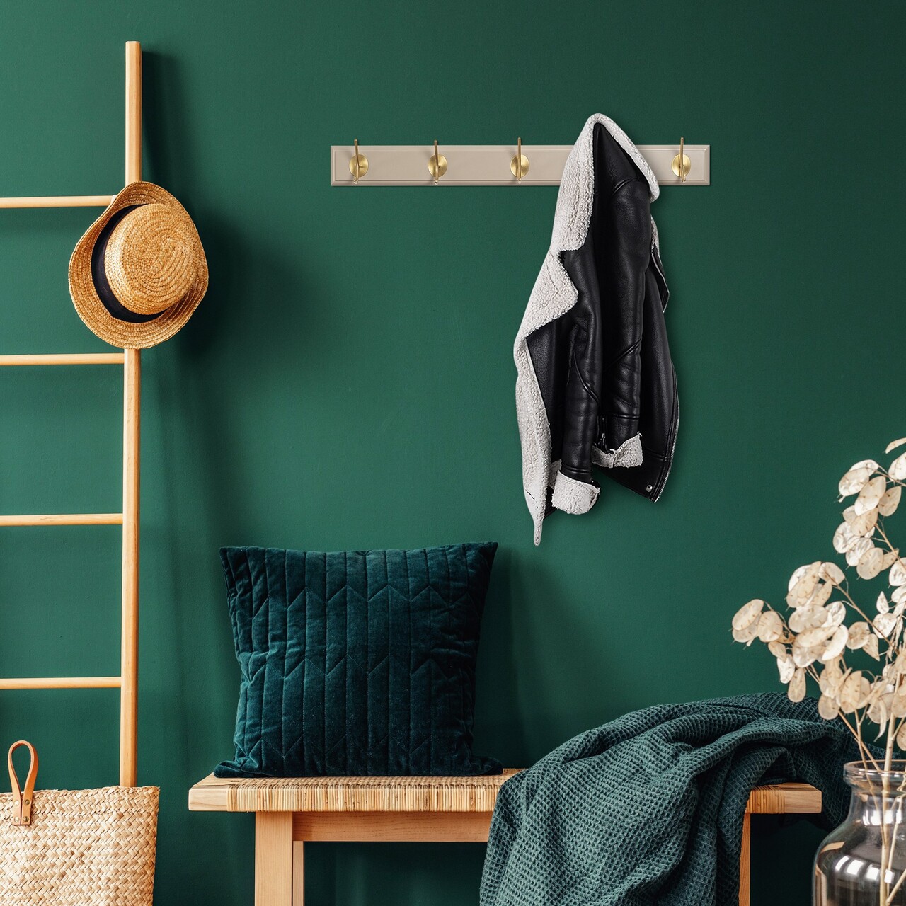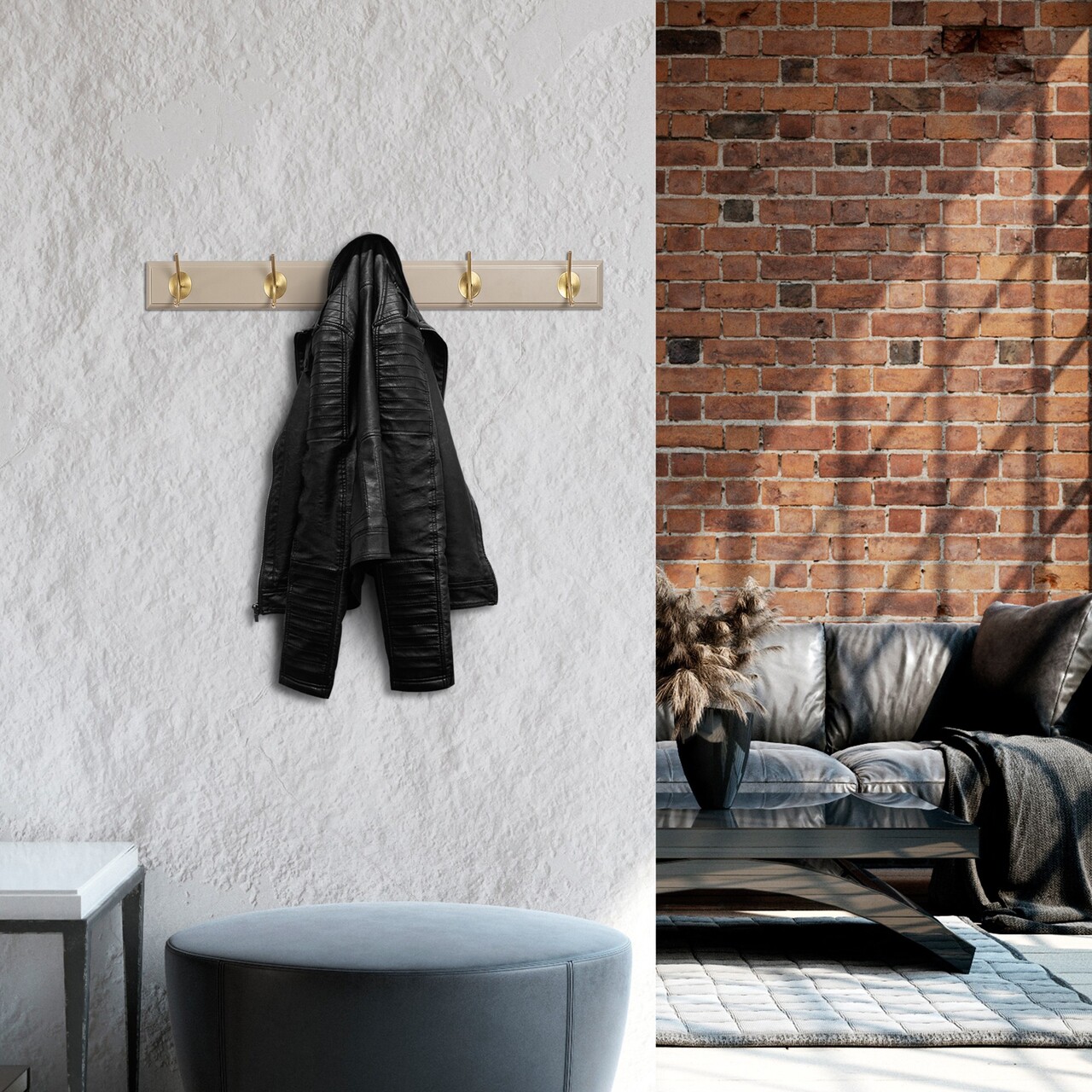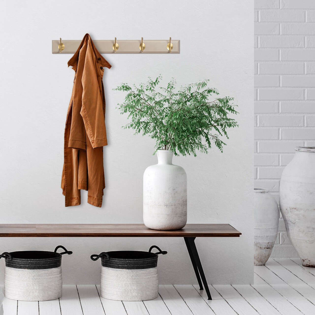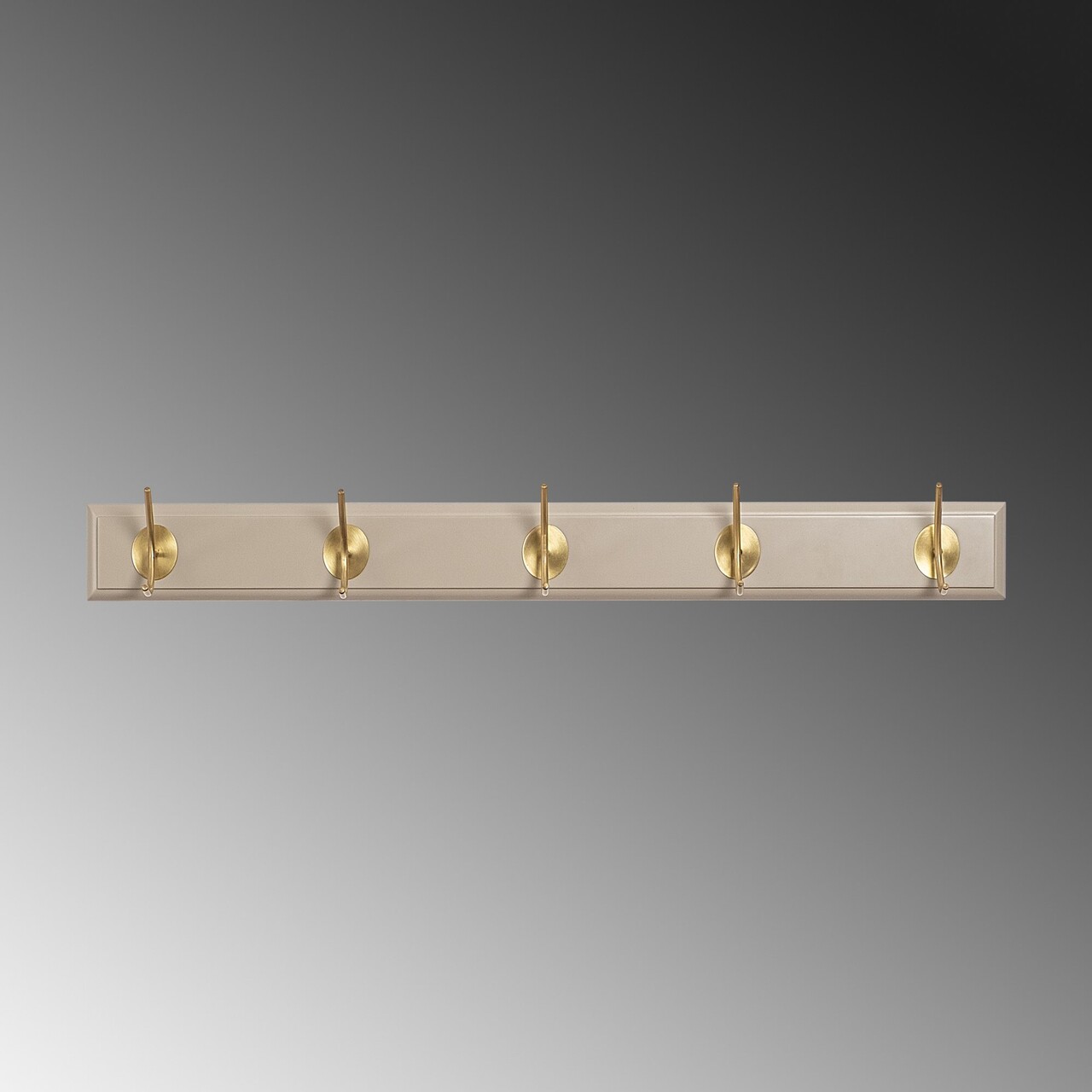 Cuier de perete din lemn, Daisetta, ASK-009, 65x7x8 cm, Lemn, Alb/Auriu