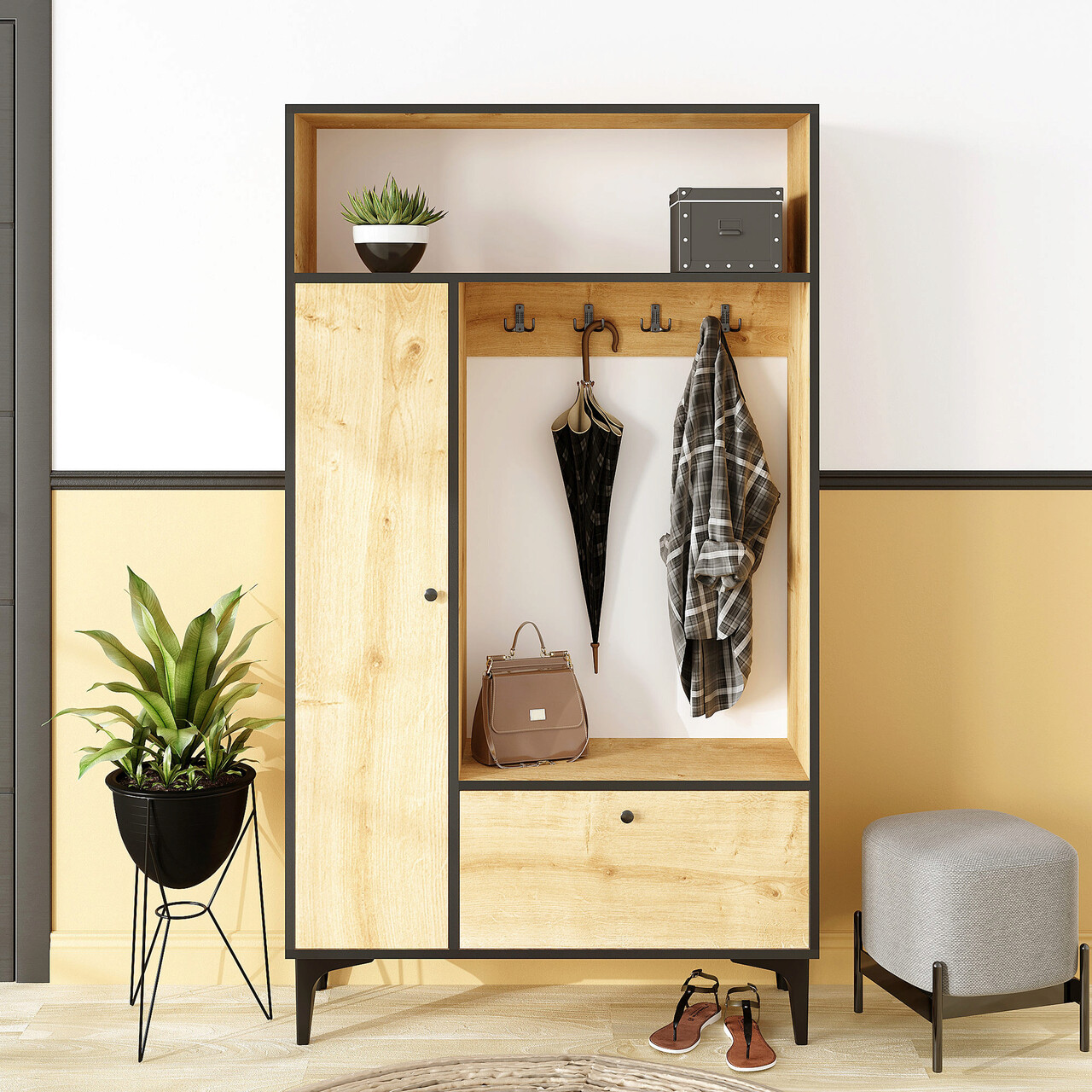 Cuier de perete, Emerald, Pera, 100x177x35 cm, Stejar safir / negru