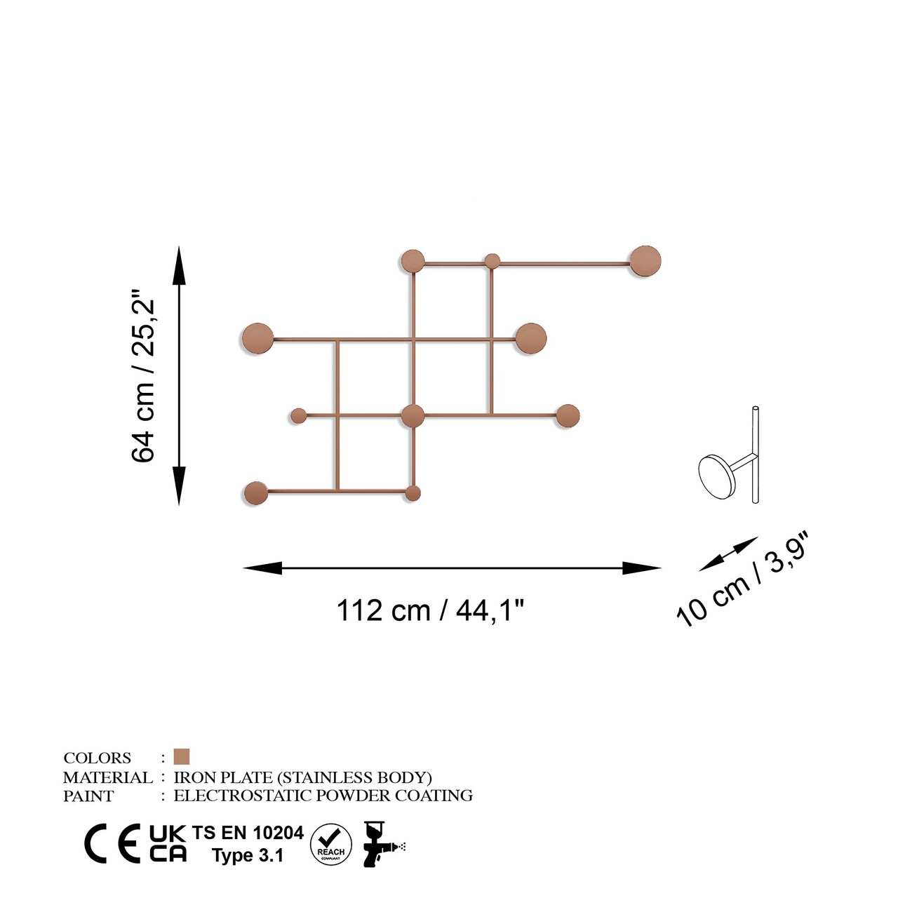Cuier de perete, Fatara-C, Grosime: 10 mm, Cupru