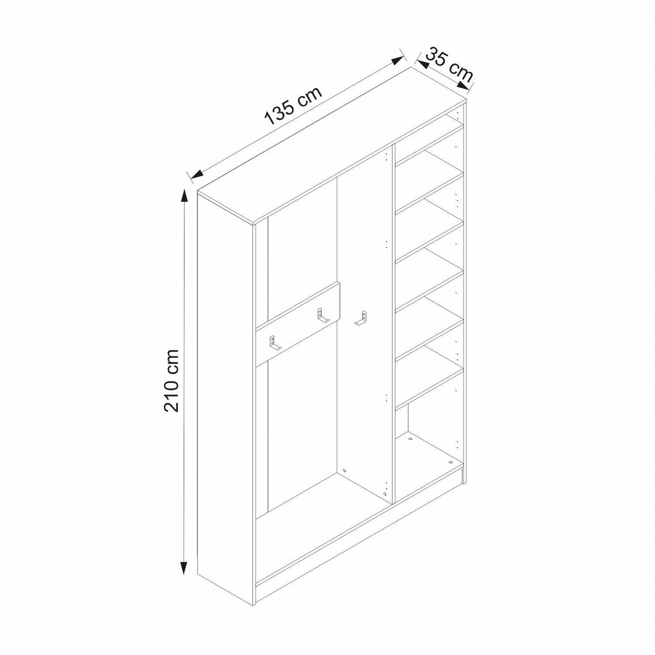 Cuier de perete, Minerva, Kale, 135x210x35 cm, PAL, Alb