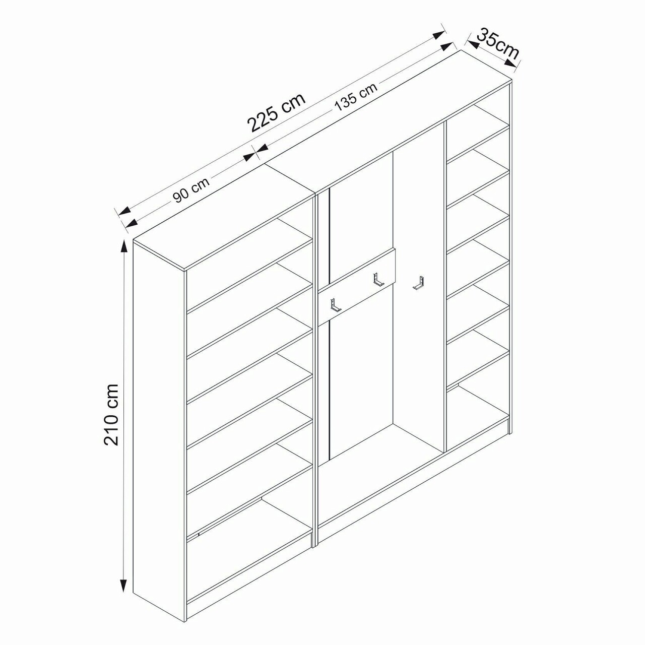 Latime: 225 cm Inaltime: 210 cm Adancime: 35 cm
