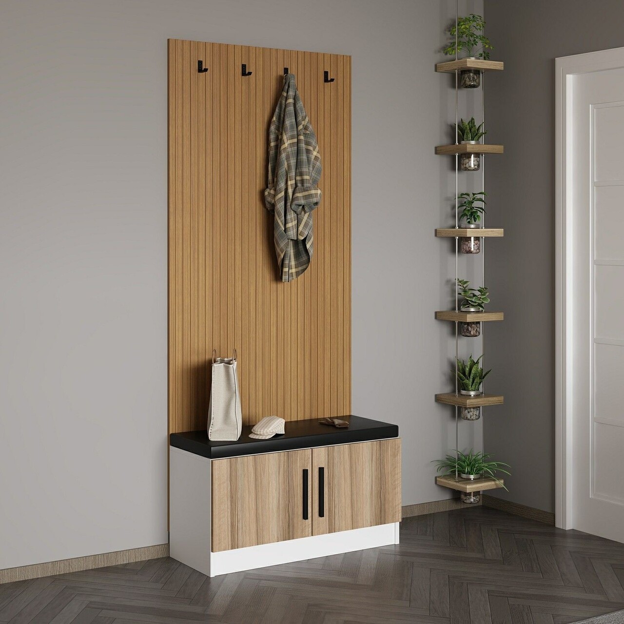 Cuier de perete, Minerva, Noah, 90x210x35 cm, PAL, Maro