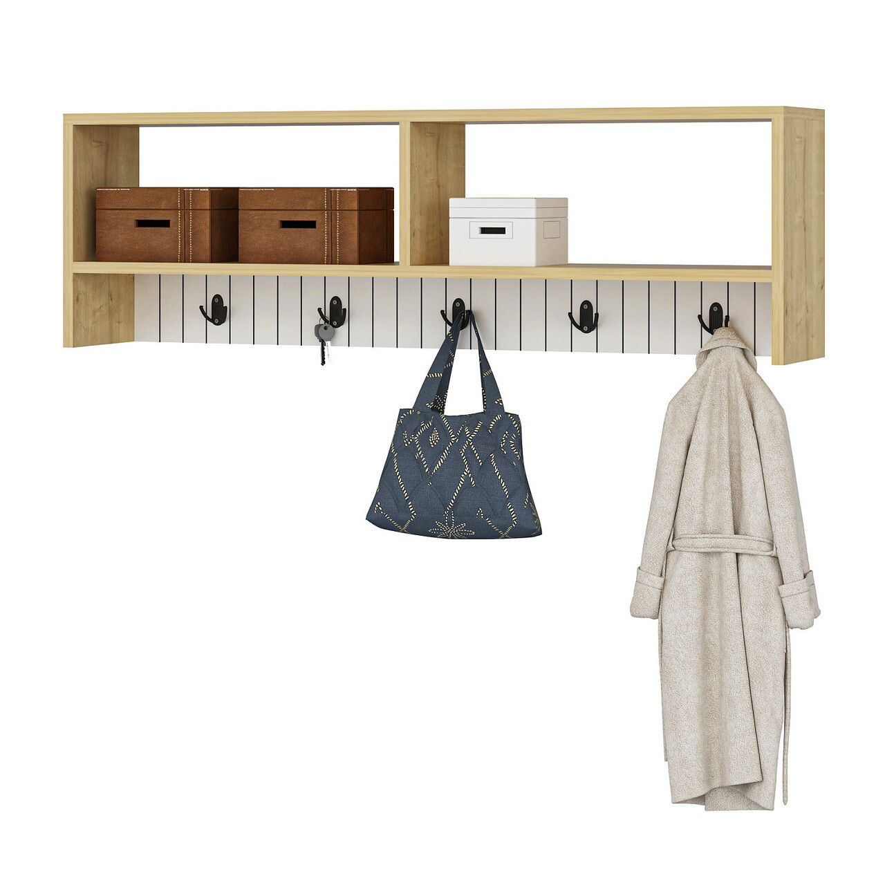 Cuier de perete, Olivia, Sarandon, 120x36.8x22 cm, PAL, Alb / Safir