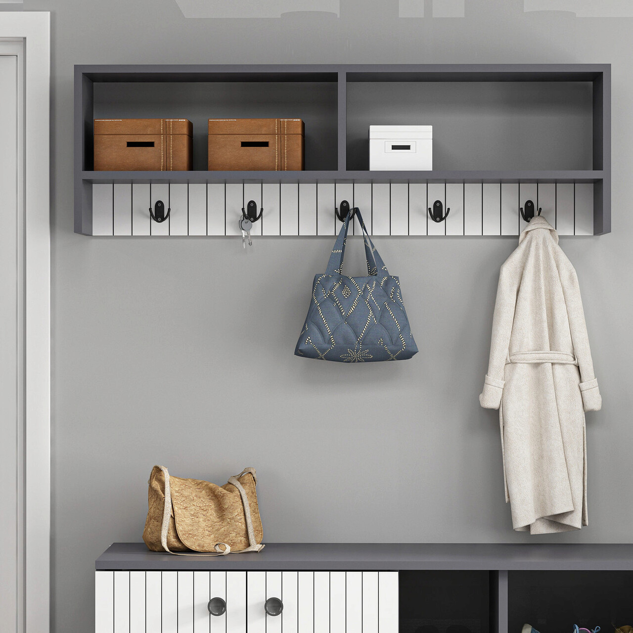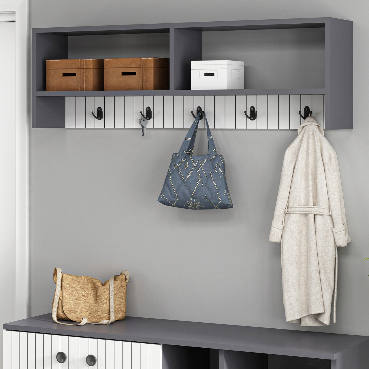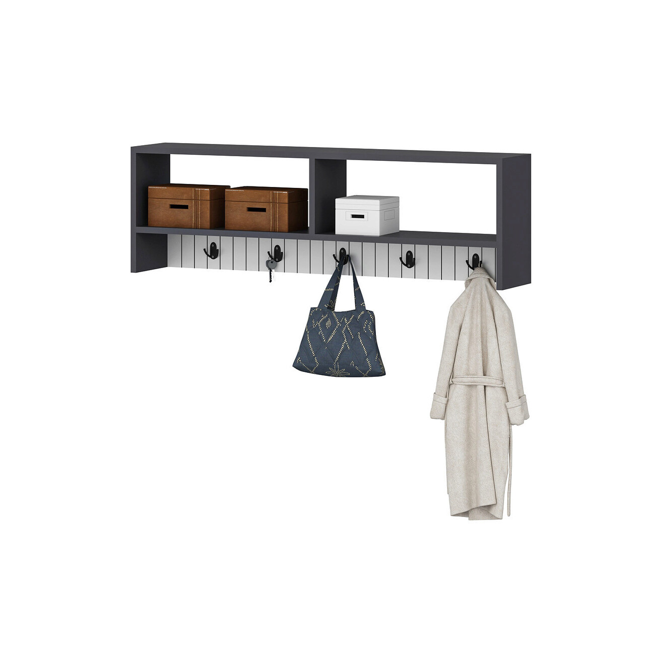 Cuier de perete, Olivia, Sarandon, 120x36.8x22 cm, PAL, Antracit/Alb
