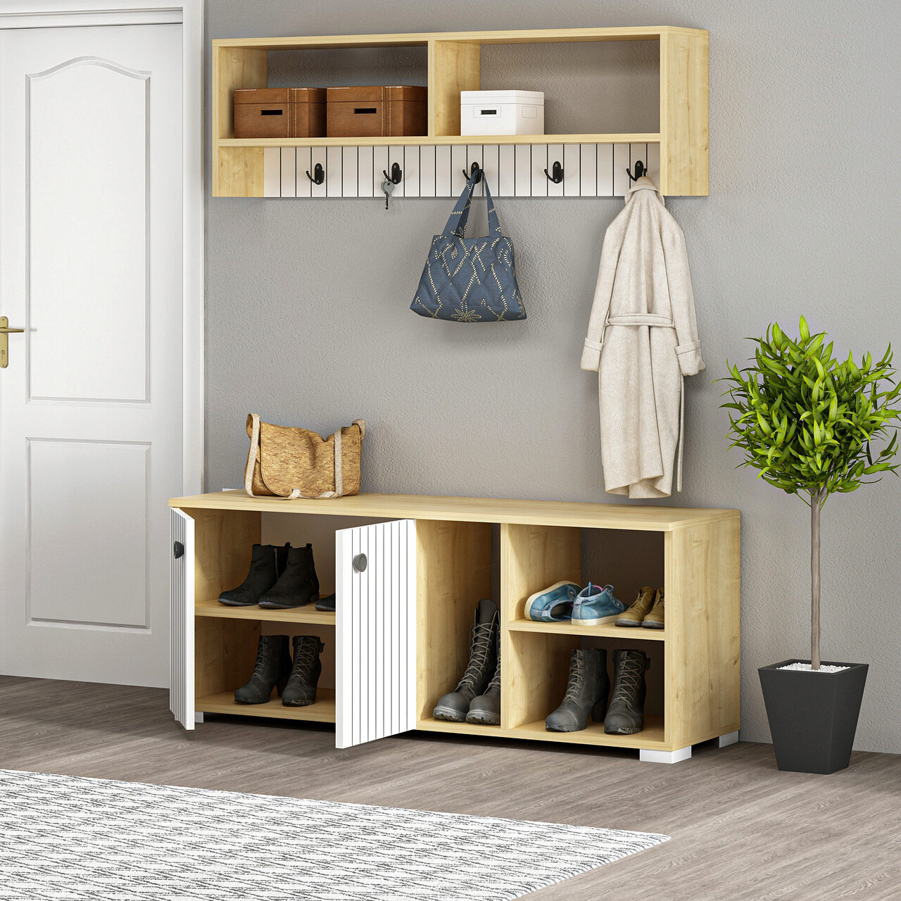 Cuier de perete, Olivia, Sarandon, 120x51.6x31.4 cm, PAL, Alb / Safir