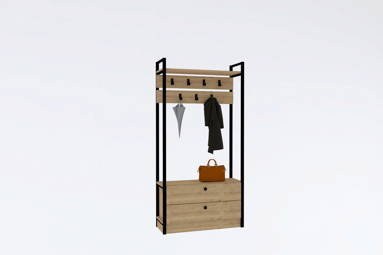 Cuier de perete, Puqa Design, Manolya, 90x180x33 cm, PAL, Safir / Negru