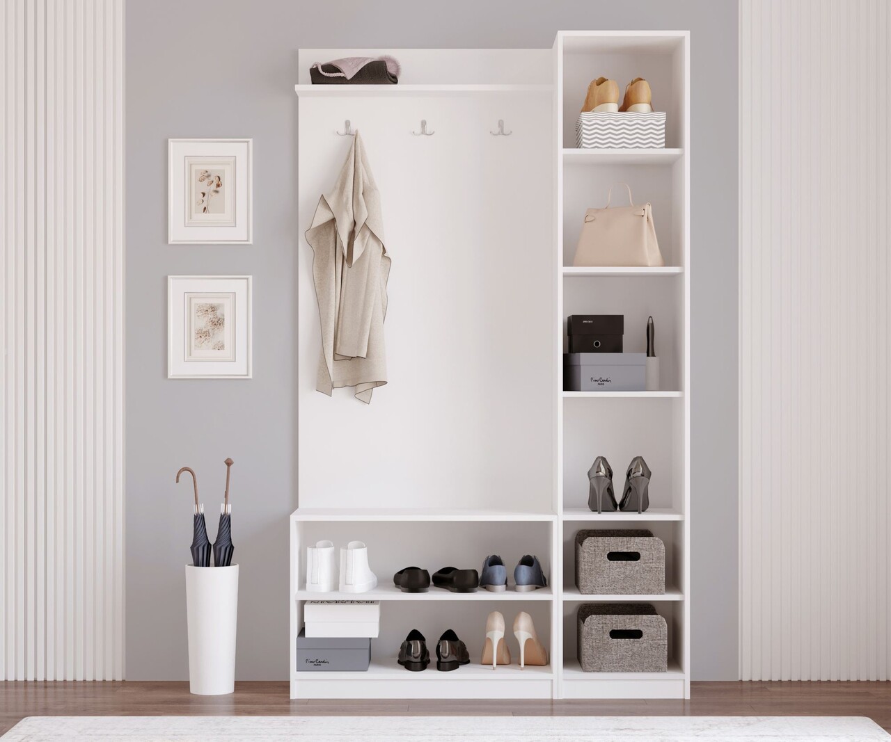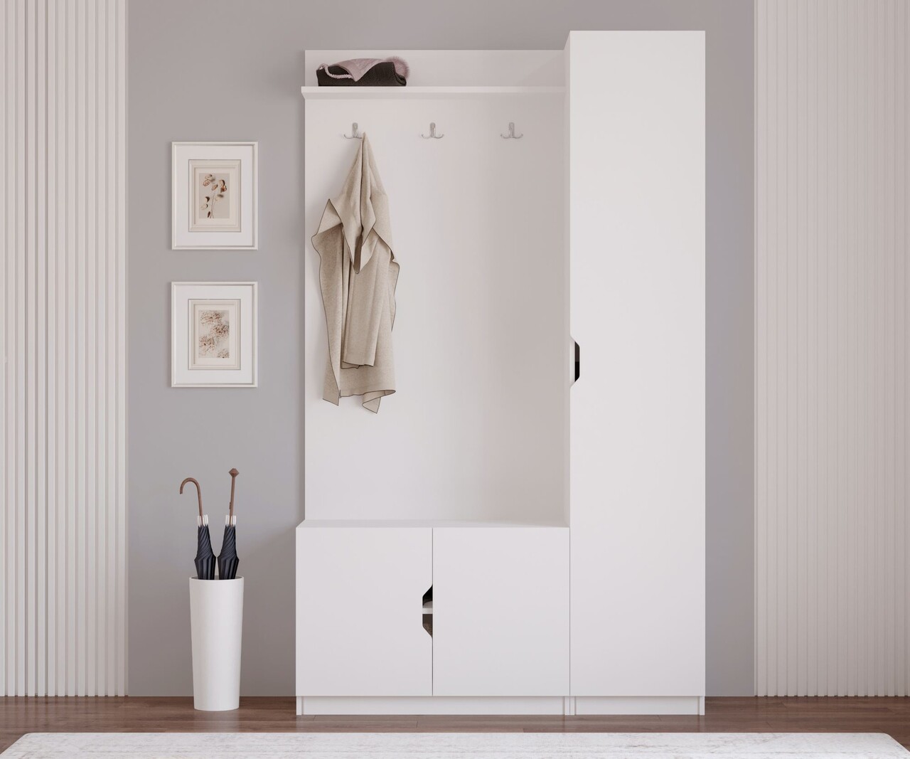 Cuier de perete, Rabi, Rb-159, 120x200x35 cm, PAL, Alb mat