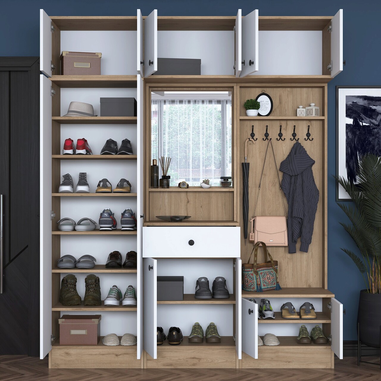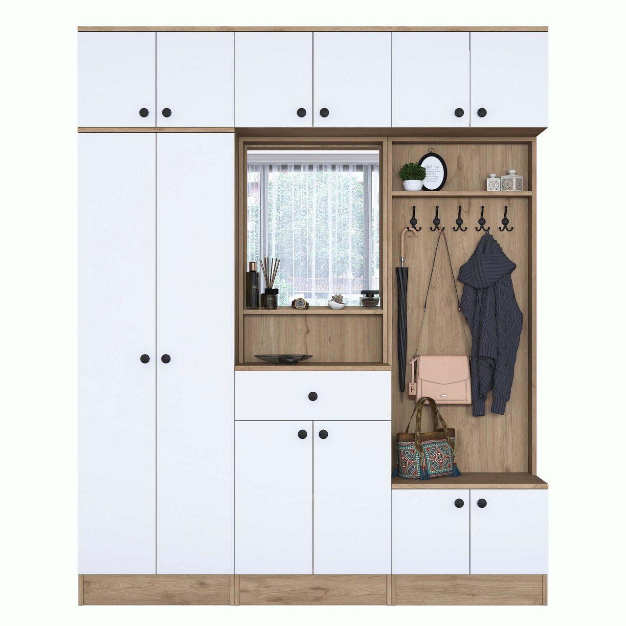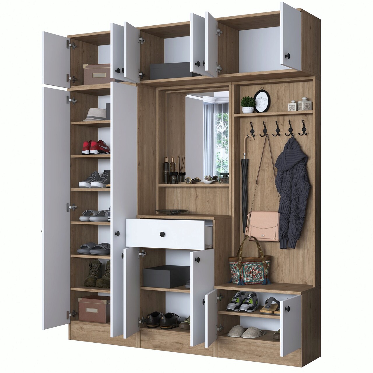 Cuier de perete, Rani, EA104, 179.6x226.4x37.5 cm, PAL, Nuc/Alb