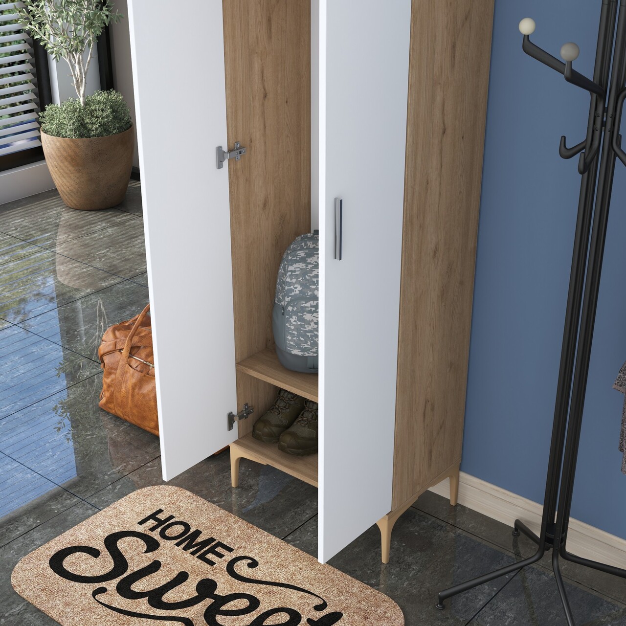 Cuier de perete, Rani, EA111, 60x198 cm, PAL, Nuc/Alb