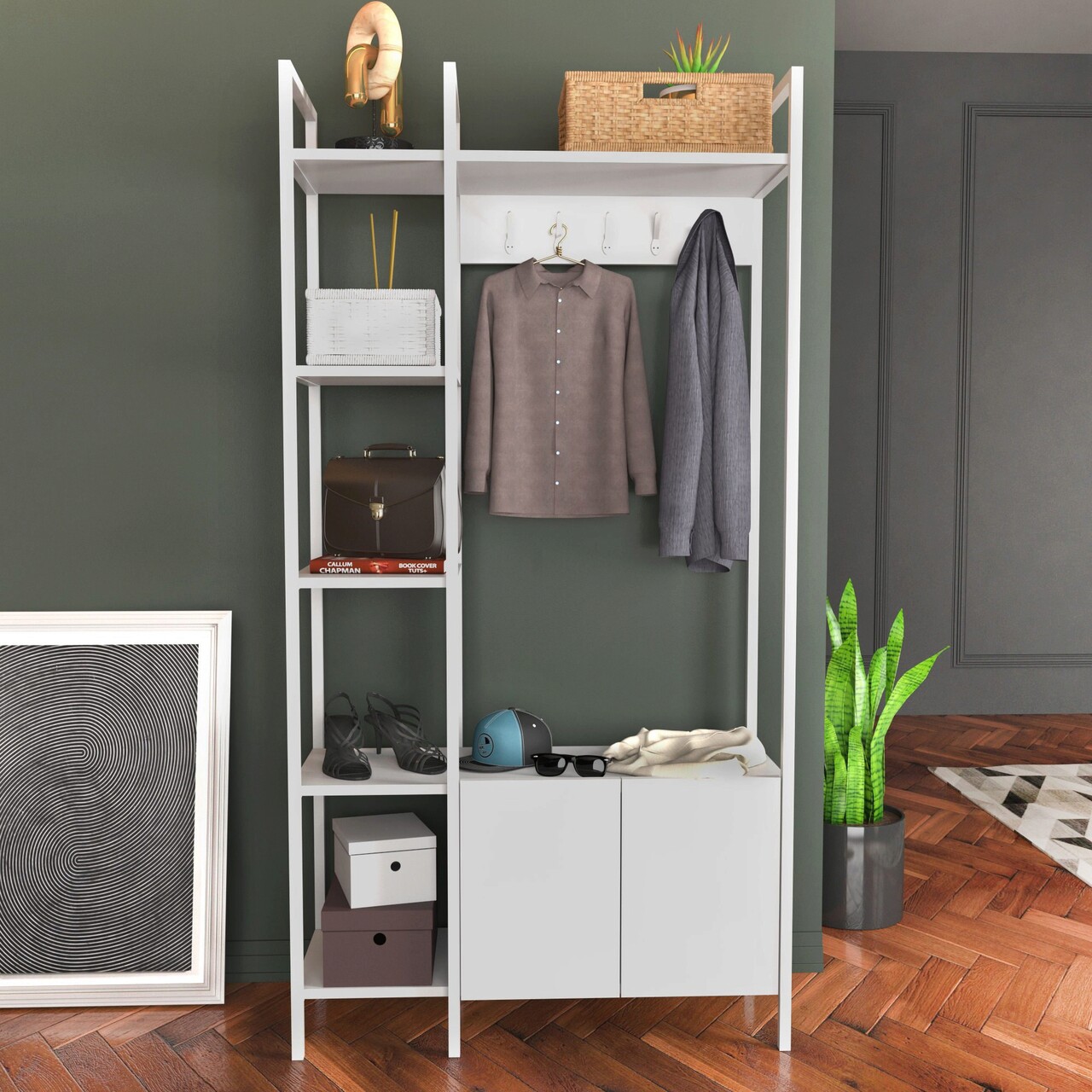 Cuier de perete, Retricy, Doga, 90x35x175 cm, PAL, Alb