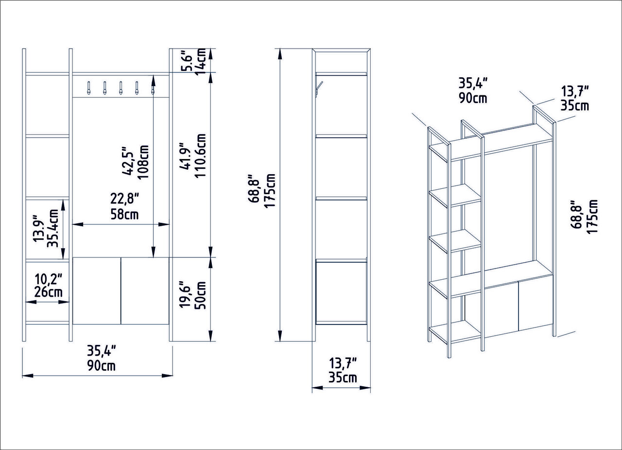 Latime: 90 cm Adancime: 35 cm Inaltime: 175 cm