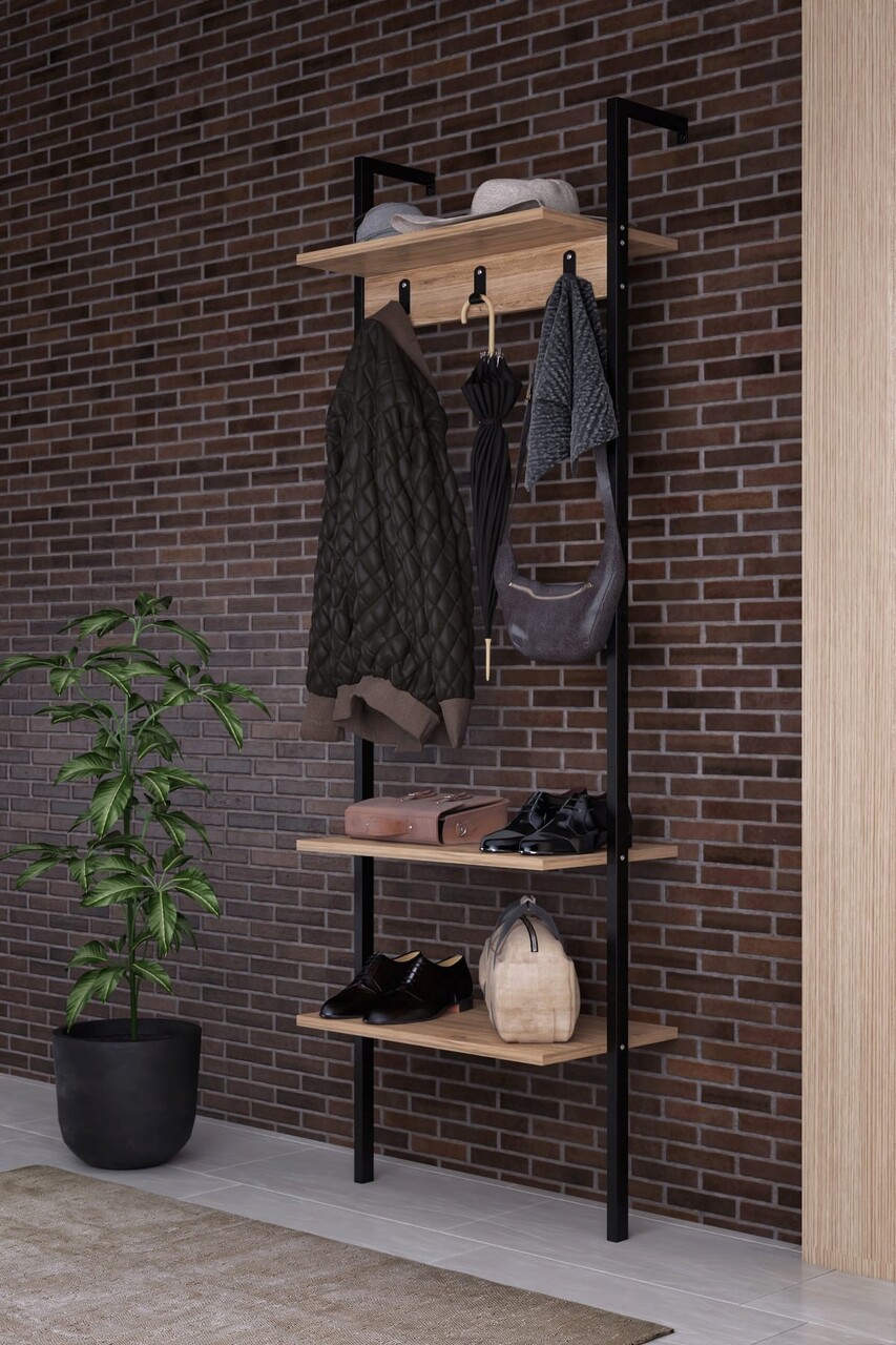 Cuier de perete, Valovi, Nina, 54x180x26 cm, PAL, Negru