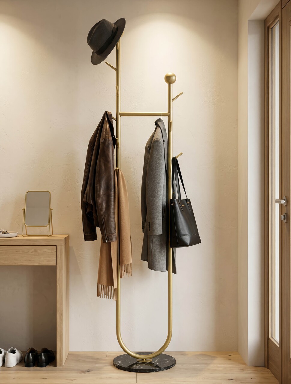 Cuier, Mauro Ferretti, Axi, 40x32x175 cm, metal/imitatie de marmura, auriu/negru