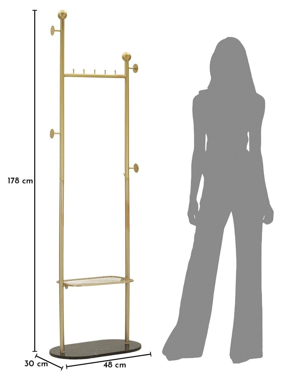Cuier, Mauro Ferretti, Olaf, 48x30x178 cm, metal/imitatie de marmura, auriu/negru