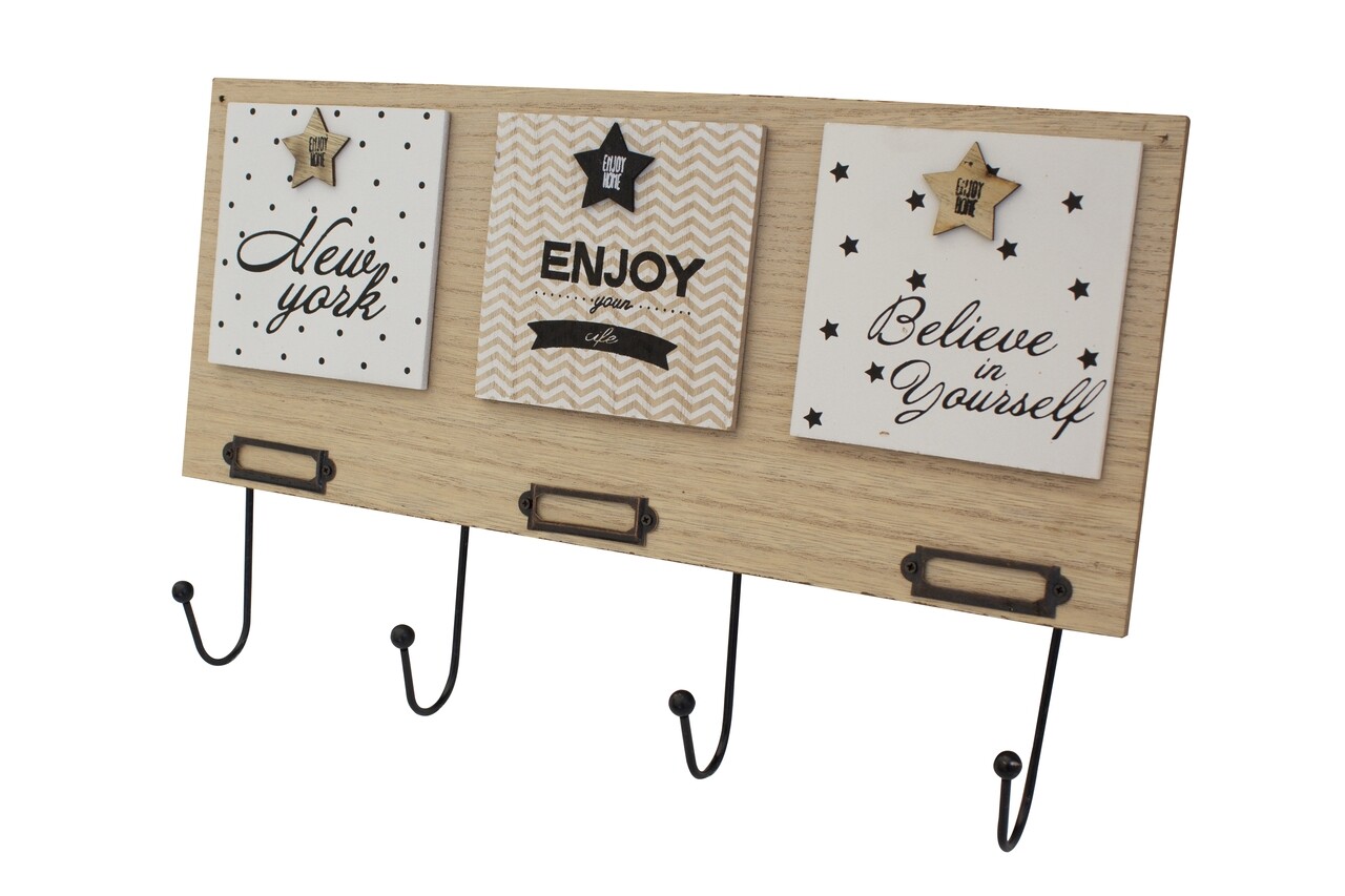 Cuier Star, Bedora, 4 agatatori, lemn/metal, multicolor