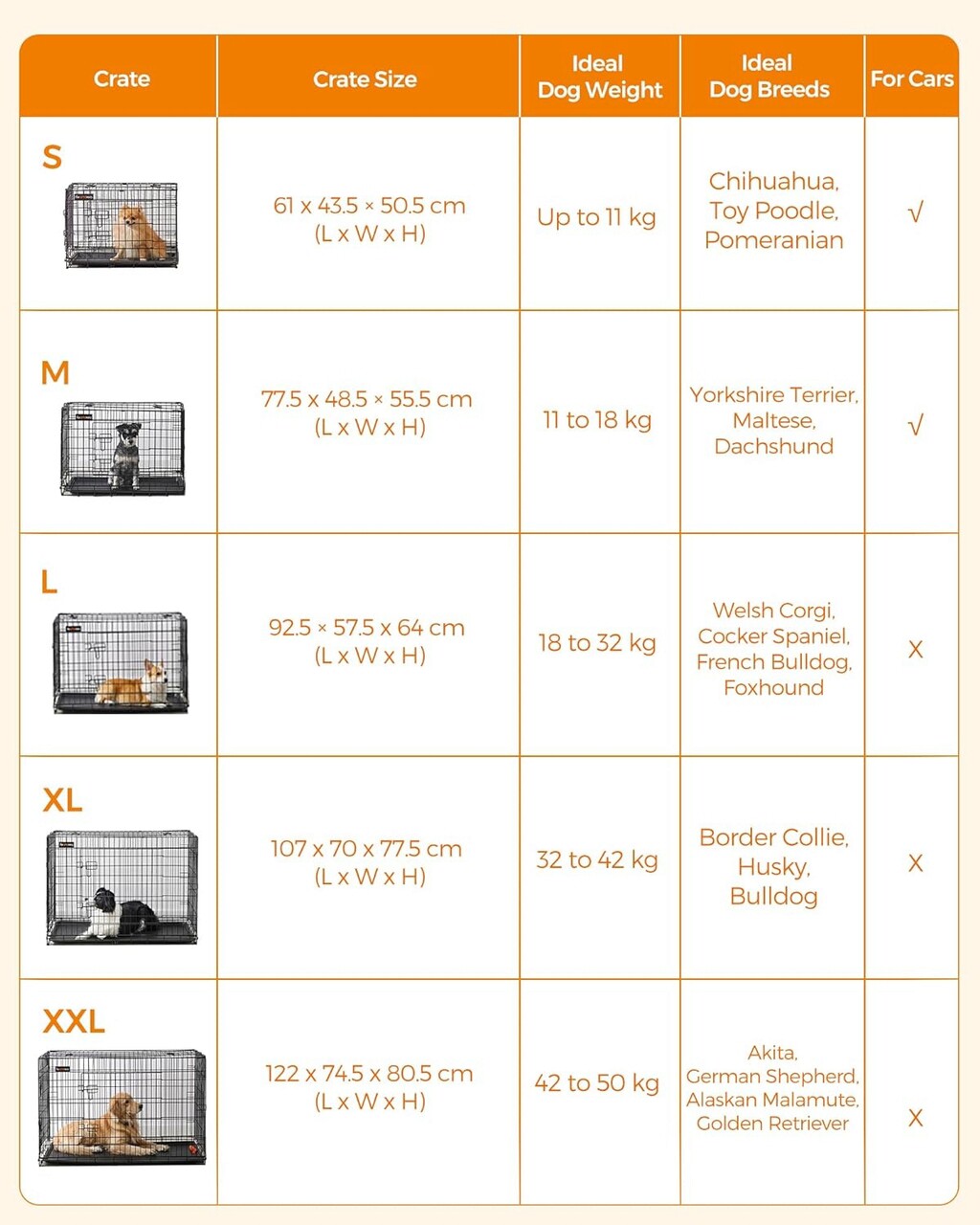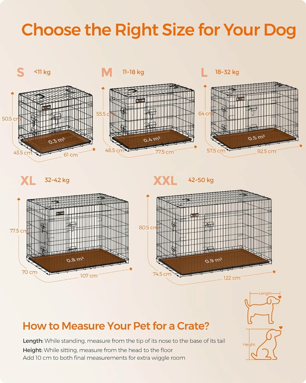 Alegeti dimensiunea potrivita: Aceasta cusca pentru caini de 92,5 x 57,5 x 64 cm este ideala pentru caini cu o greutate cuprinsa intre 18-32 kg. Rase recomandate: Pembroke Welsh Corgi, Cocker Spaniel, Foxhound, etc. Va rugam sa cititi sfaturile noastre de masurare din note pentru a alege dimensiunea potrivita.