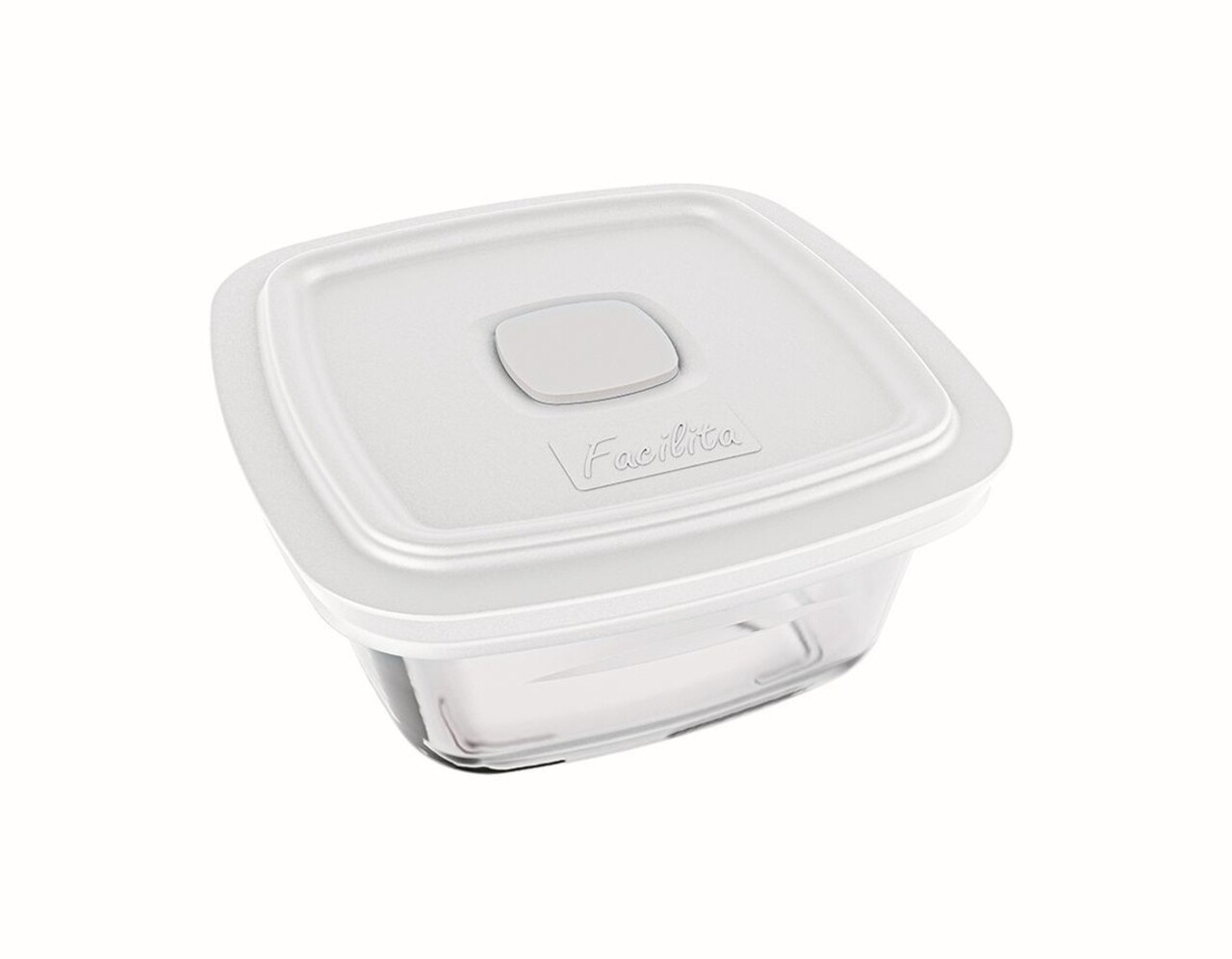Cutie alimentara cu capac ermetic patrata, Marinex, 2 L, plastic (PP)/sticla termorezistenta, alb