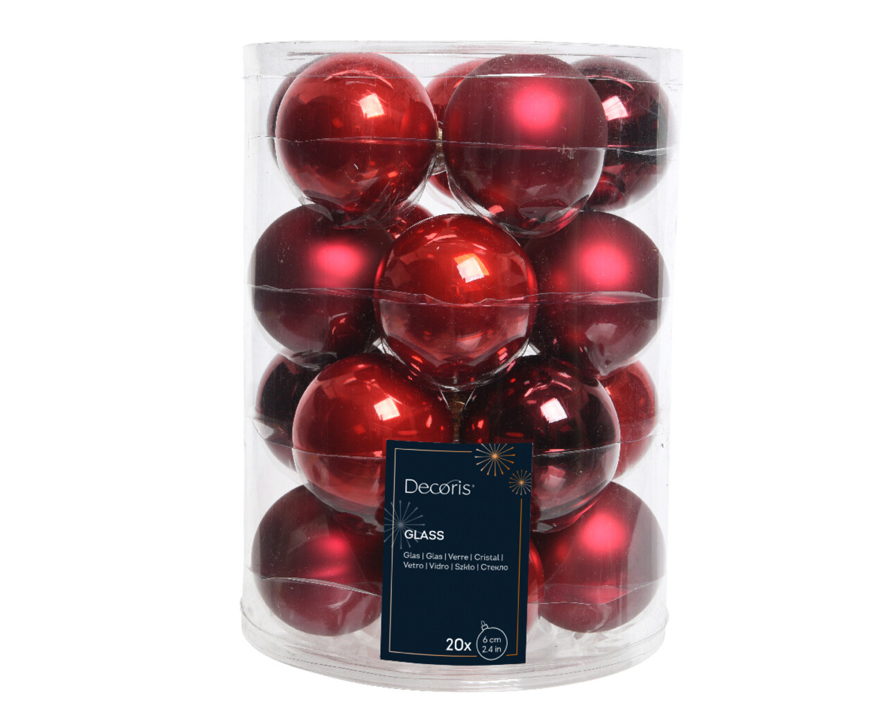 6 globuri rosu inchis cu diametrul 6 cm, finisaj lucios;