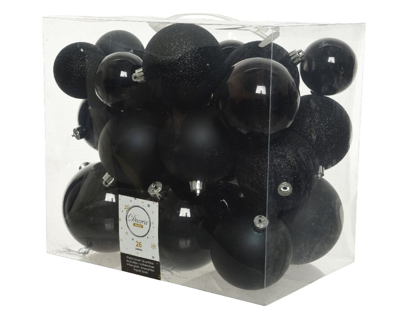 Cutie cu 26 globuri asortate Plain mix, Decoris, plastic, negru