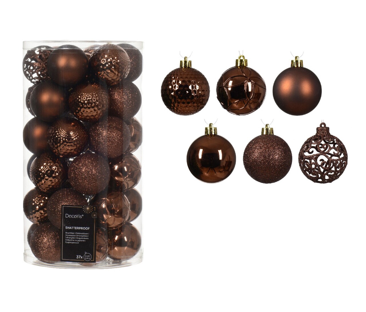 Cutie cu 37 globuri Classic design, Decoris, 6 cm, plastic, maro