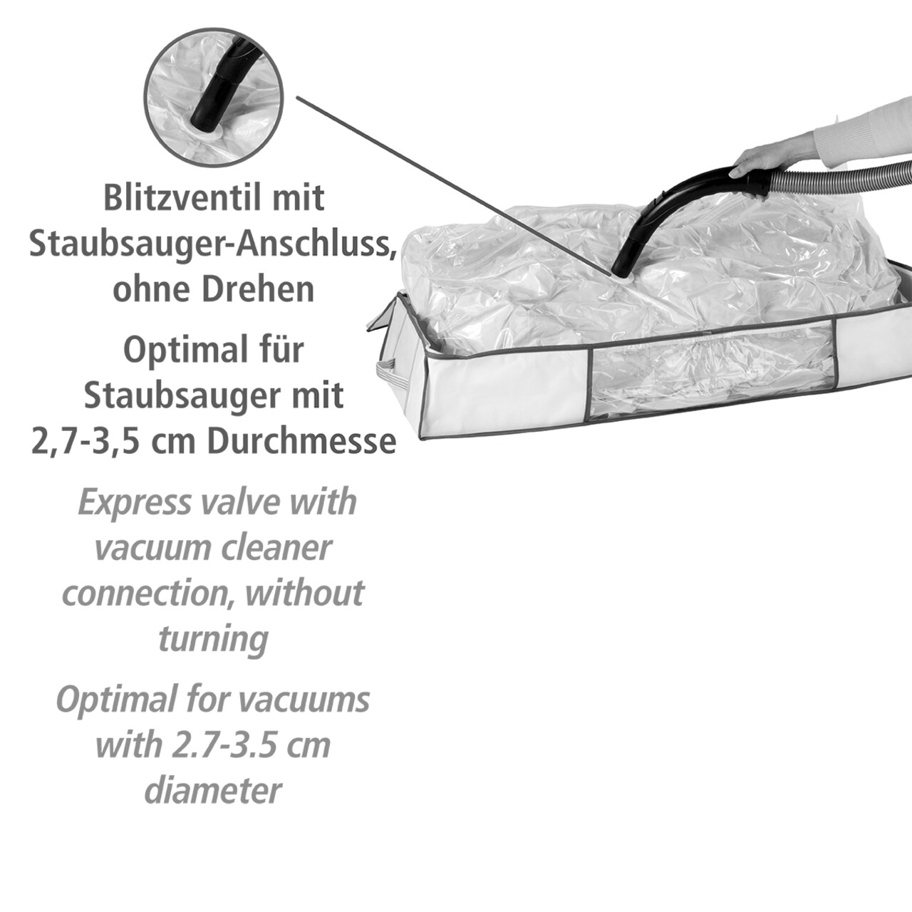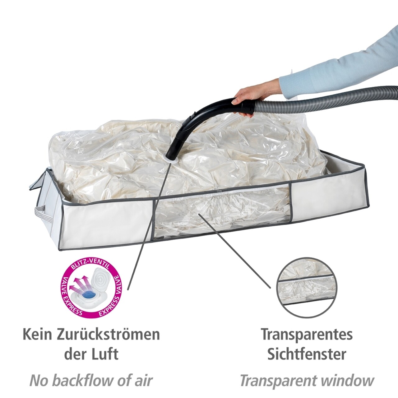 Cutie cu sac pentru vidat Vacuum Soft Box, Wenko, 105x45x15 cm, plastic/polipropilena, alb