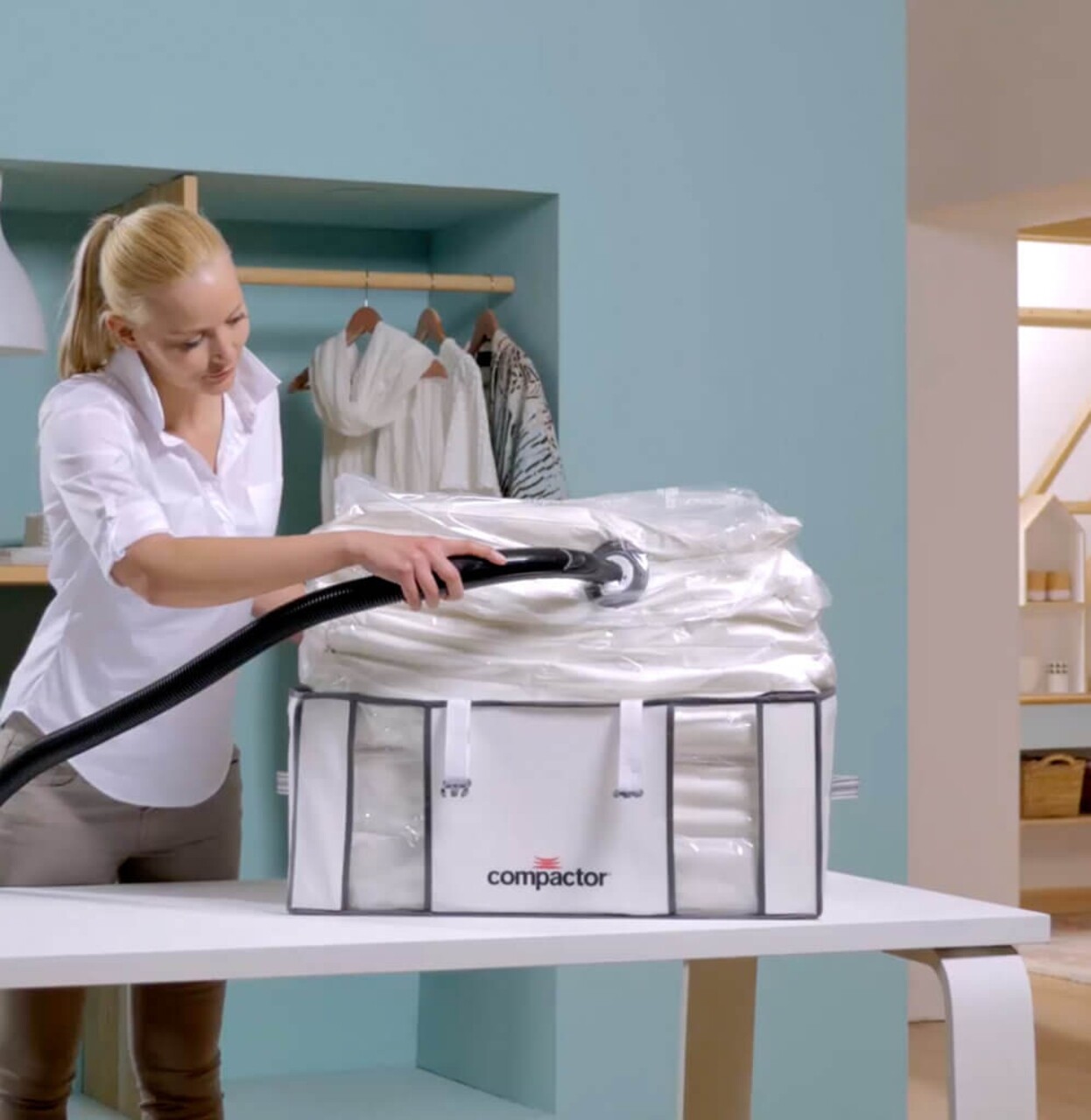 Lipsa spatiului este de multe ori o problema. De aceea, pungile pentru vidat sunt o alternativa potrivita pentru depozitarea pe termen lung a anumitor haine, paturi, pleduri si nu numai. Astfel, cu ajutorul unui aspirator si a pungilor speciale pentru vidat putem reduce spatiul cu pana la 75%. Dupa aceea, acestea pot fi depozitate in cutia speciala.